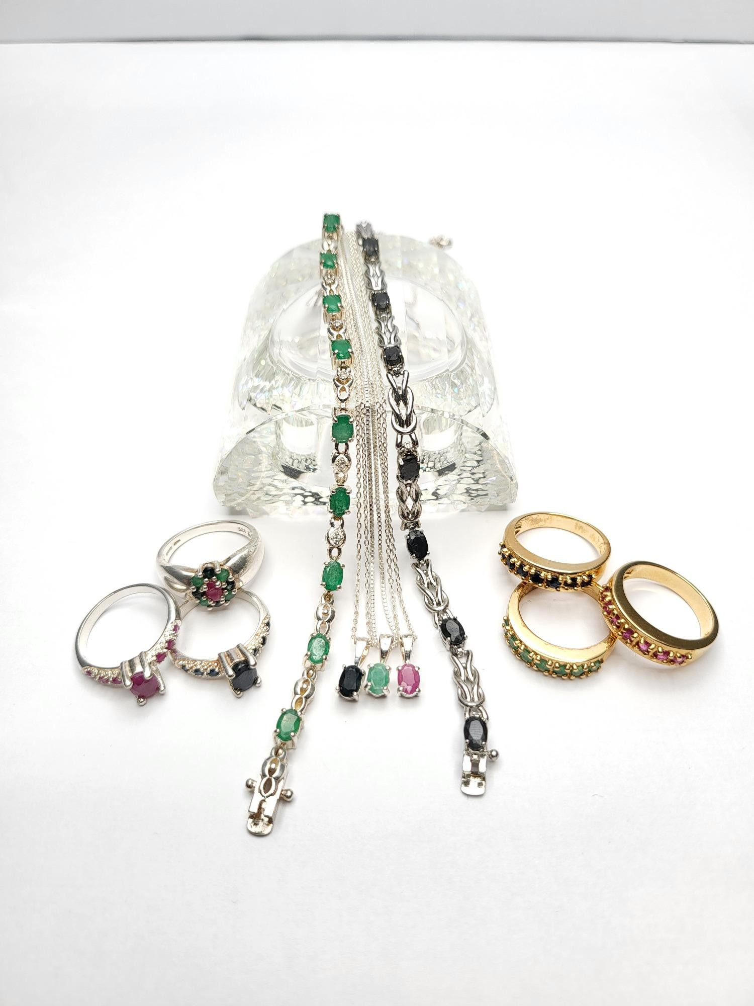 Lot # 147 - Genuine Ruby, Emerald, Sapphire Sterling Jewelry 50.8gr