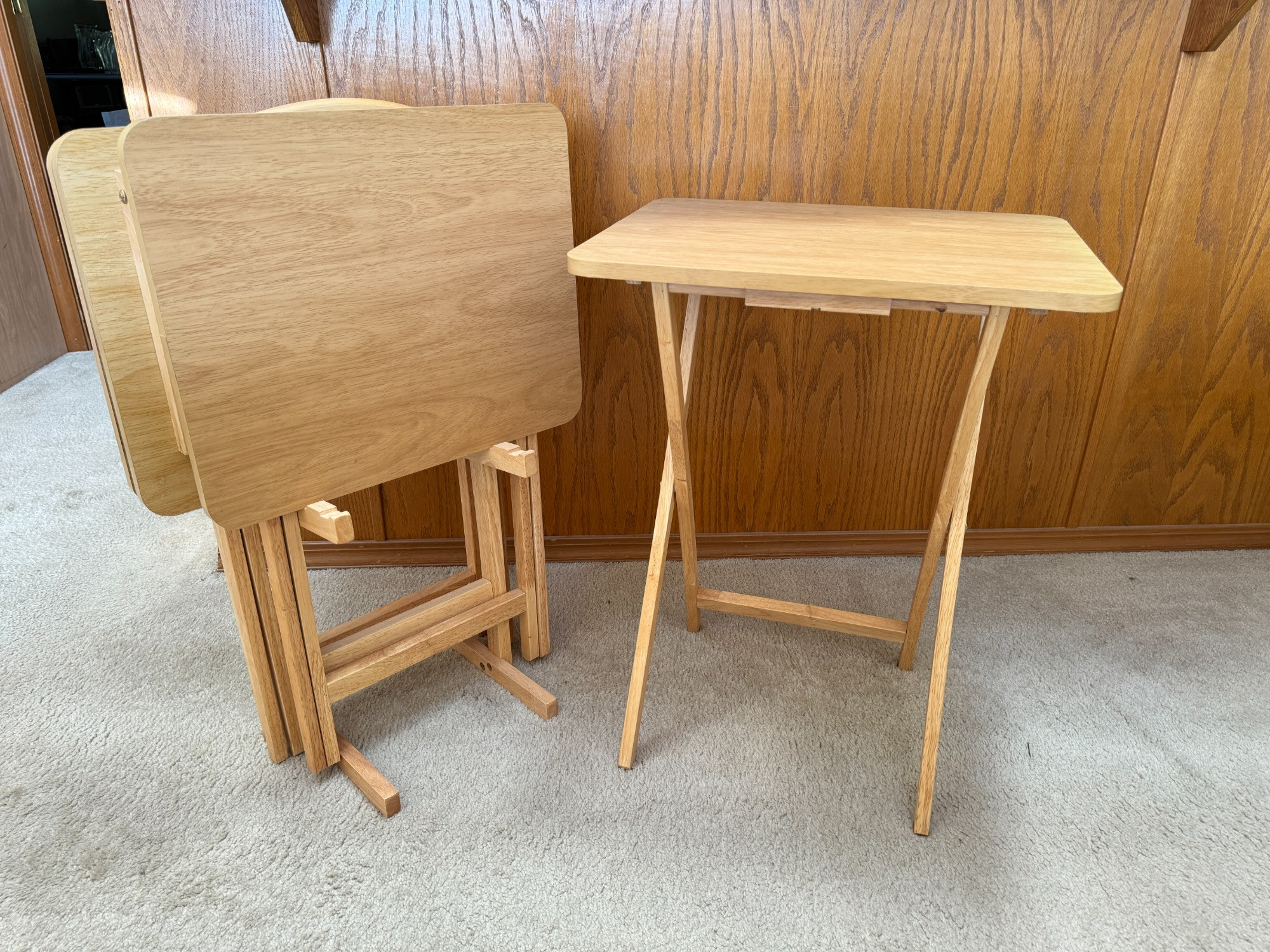 Lot # 31 - Modern Faux Wood Laminate TV Trays & Stand