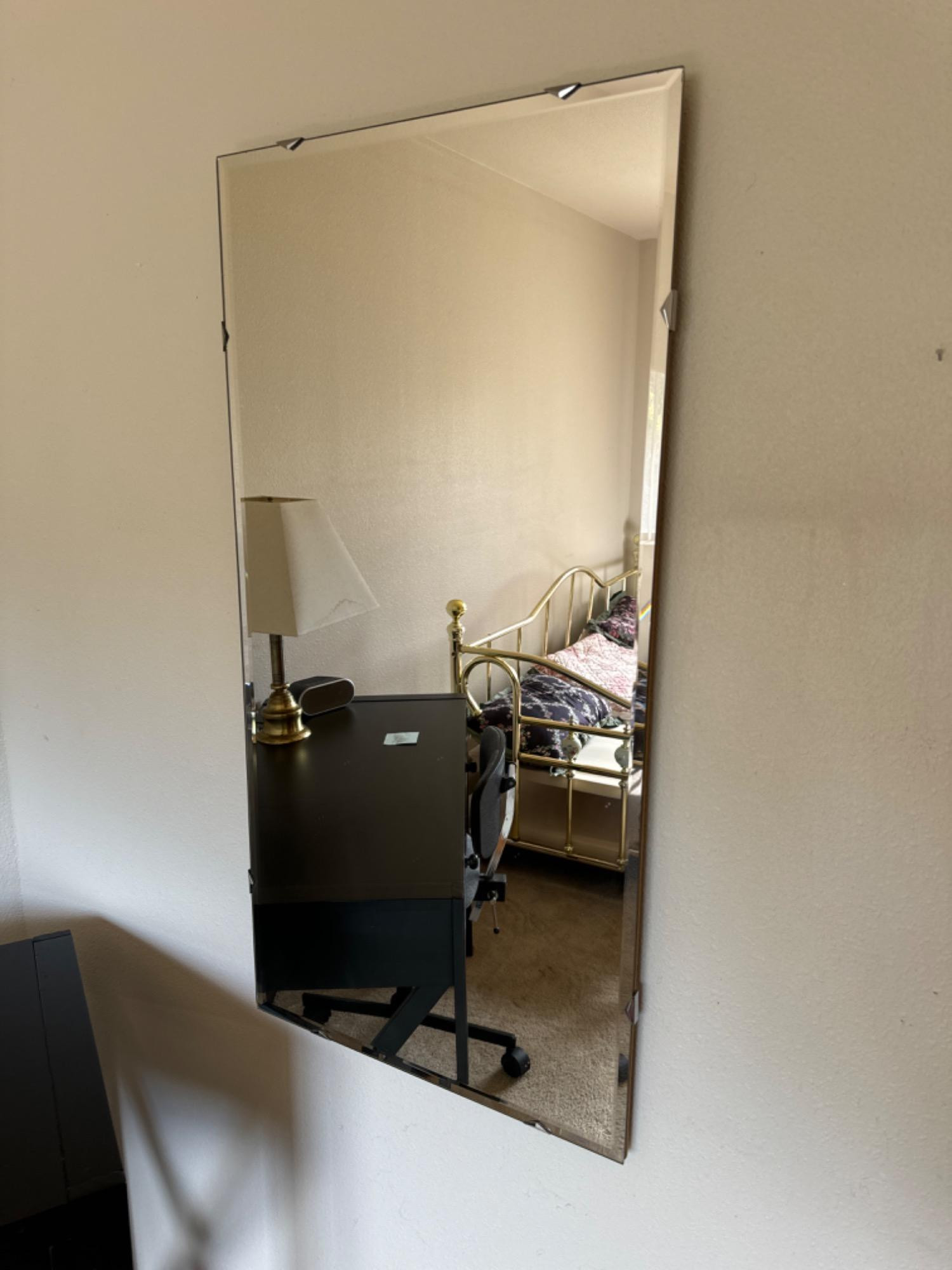 Mid Century Atomic Beveled Mirror Measures: 40" x 20" Can be hung landscape or portrait