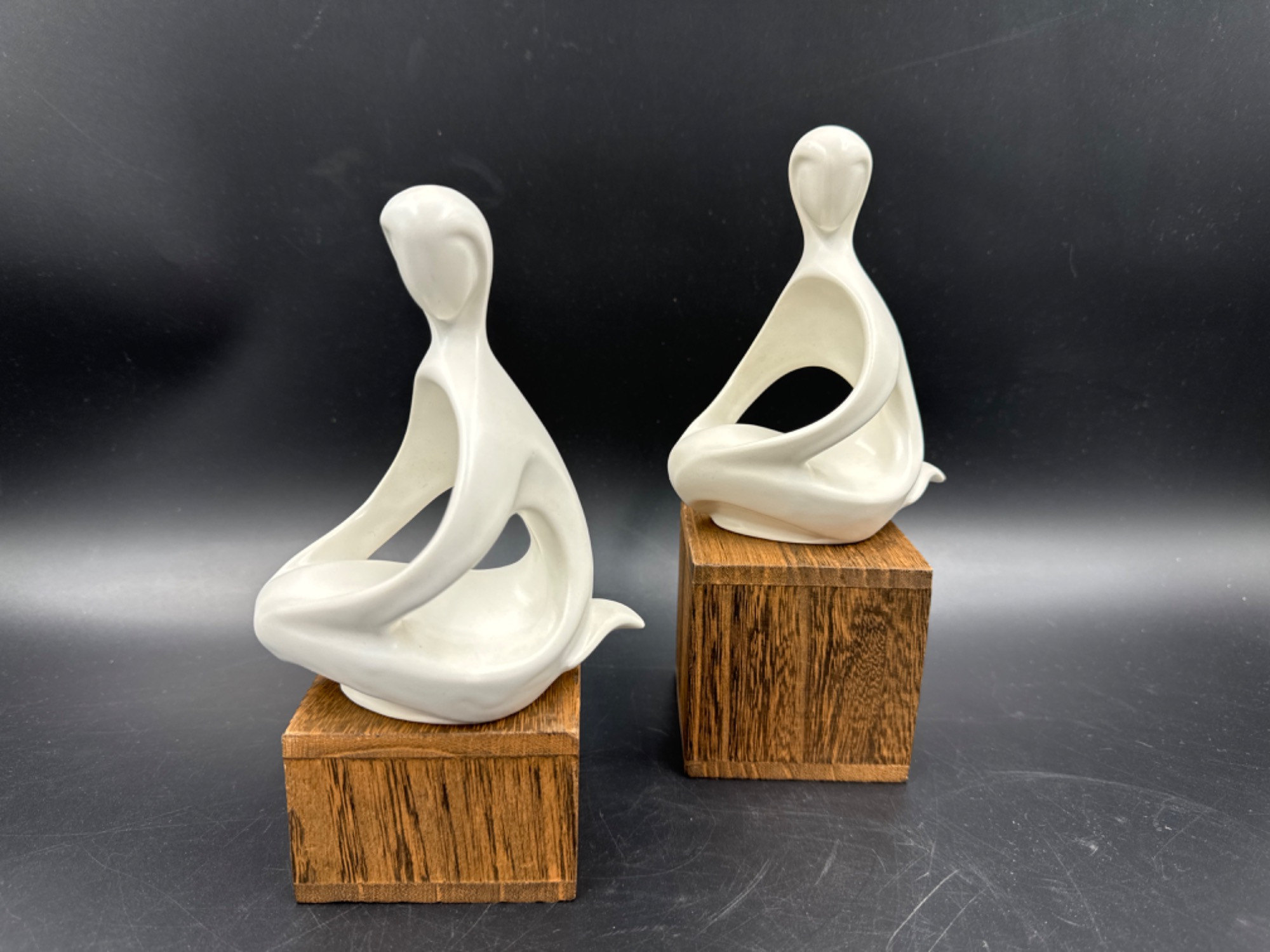 Mid Century 1950s Villeroy and Boch Bambi-Line Luxembourg Ceramic Siren Figurines Each measure: 5.75"T by approximately 5” x 3" Both in excellent condition