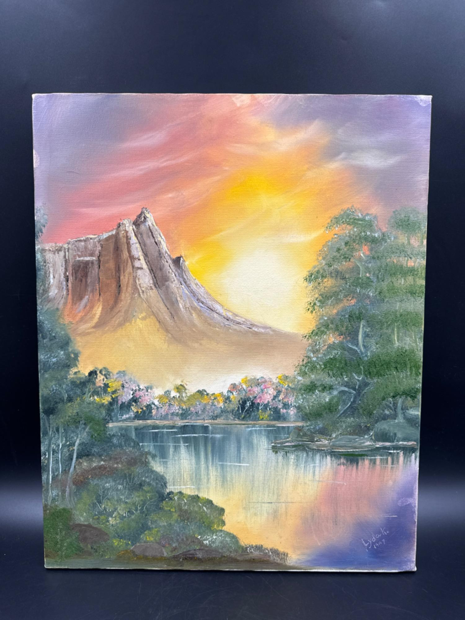Lot # 59 - Original Mountain at Sunset Landscape Painting - 16"x20"