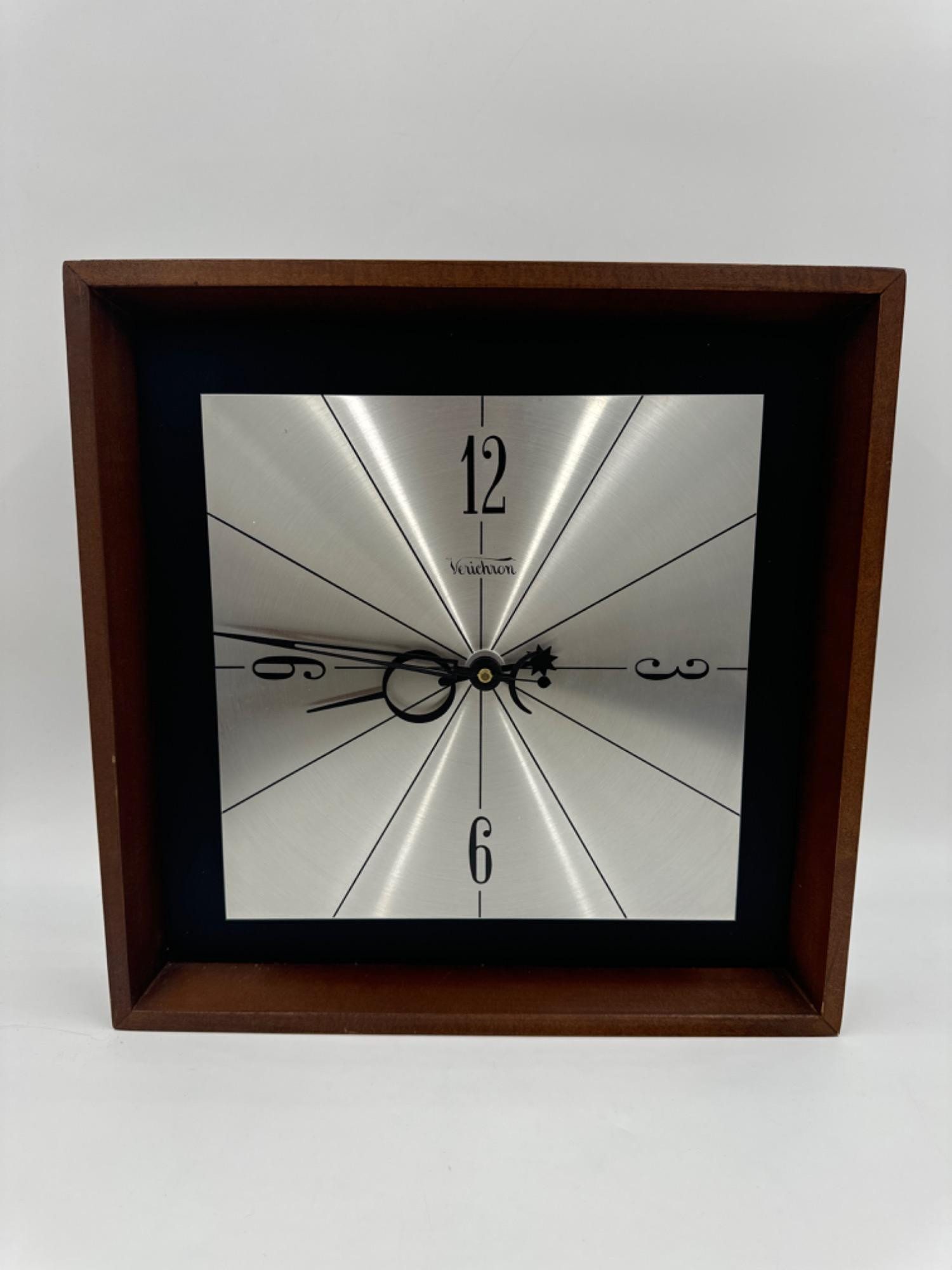 Lot # 62 - Vintage MCM Verichron Wood and Chrome Atomic Square Wall Clock