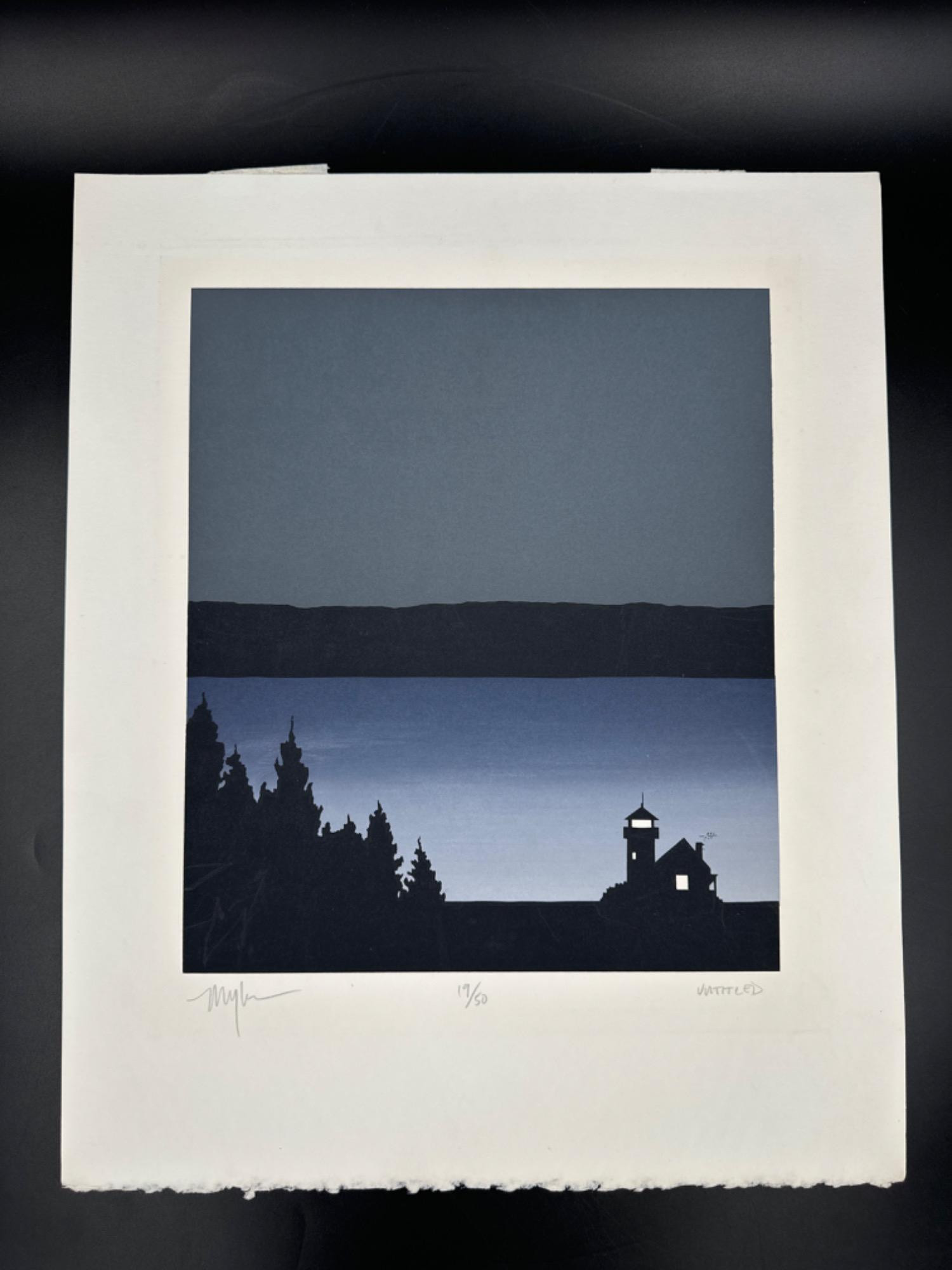S/N Landscape Silhouette Blue & Black Art Print - 19 of 50 'Untitled' Sheet measures 18.25" x 15" Unknown signature