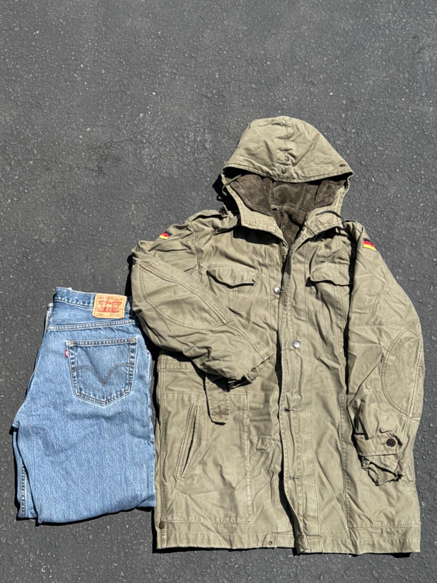 Lot # 119 - Vintage Mens German Army Hooded Jacket Fully Lined + 550 Levis