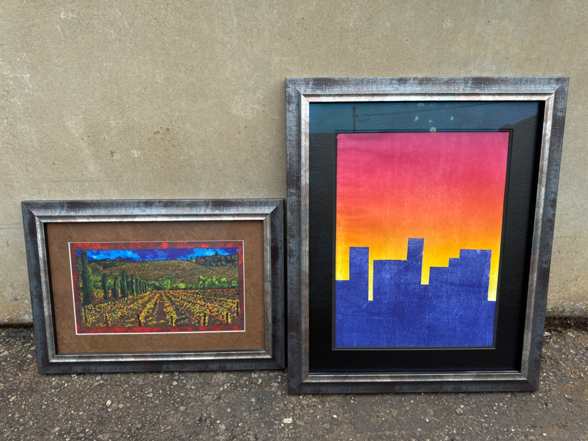 Lot # 181 - Ombre Skyline + Signed 'Fall Vineyards' Framed Art Prints
