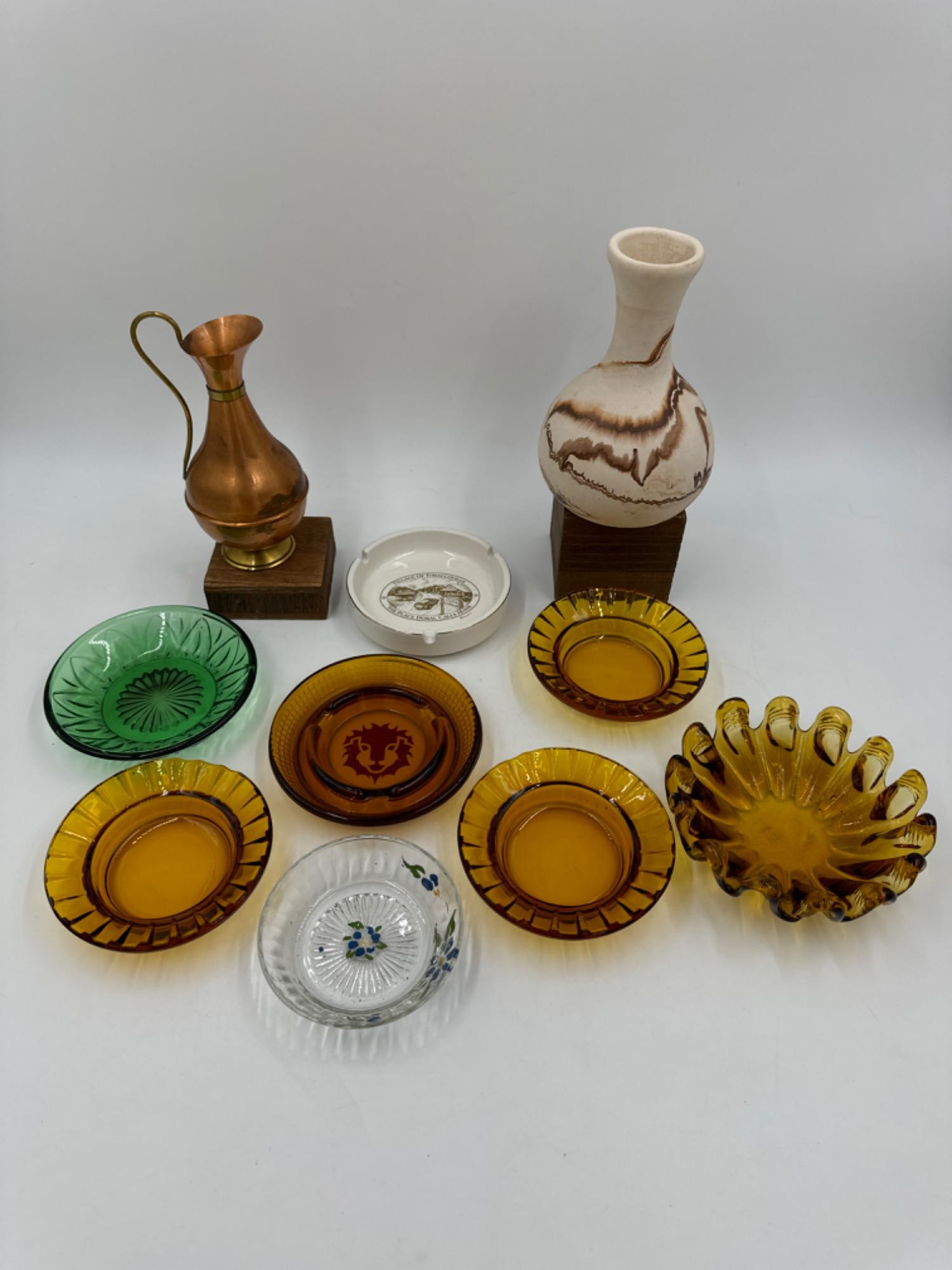 Lot # 227 - Vintage Glass Trinket Dishes & Ashtrays - Nemadji Pottery Vase