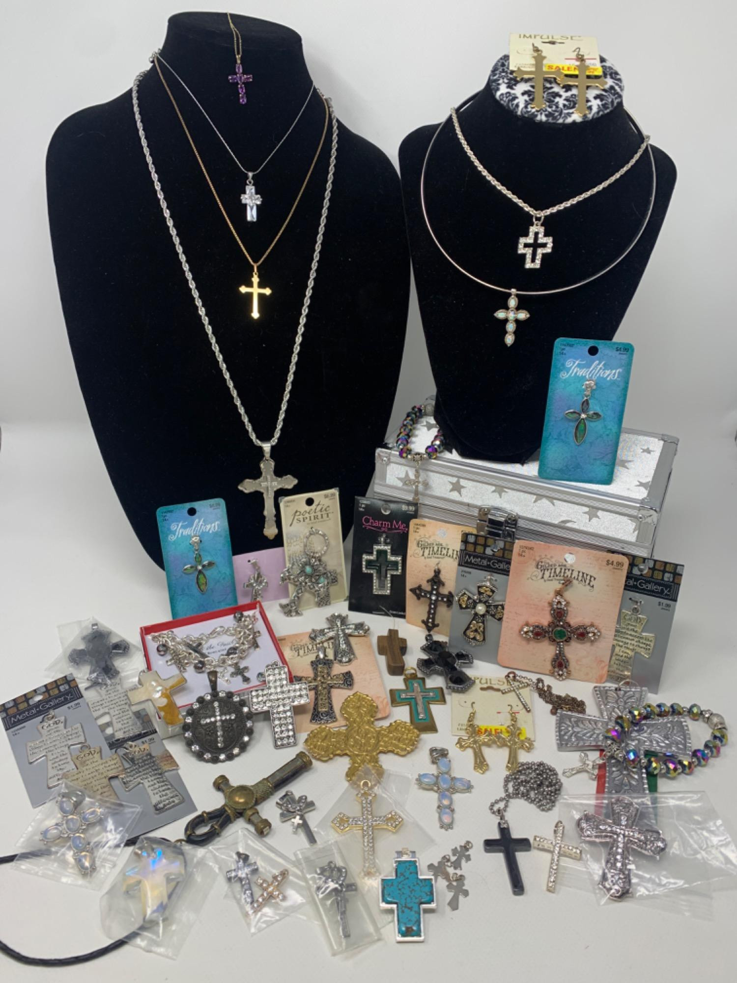 Large collection of new and lightly used religious jewelry. Variety of styles, sizes and materials. Most are new.
