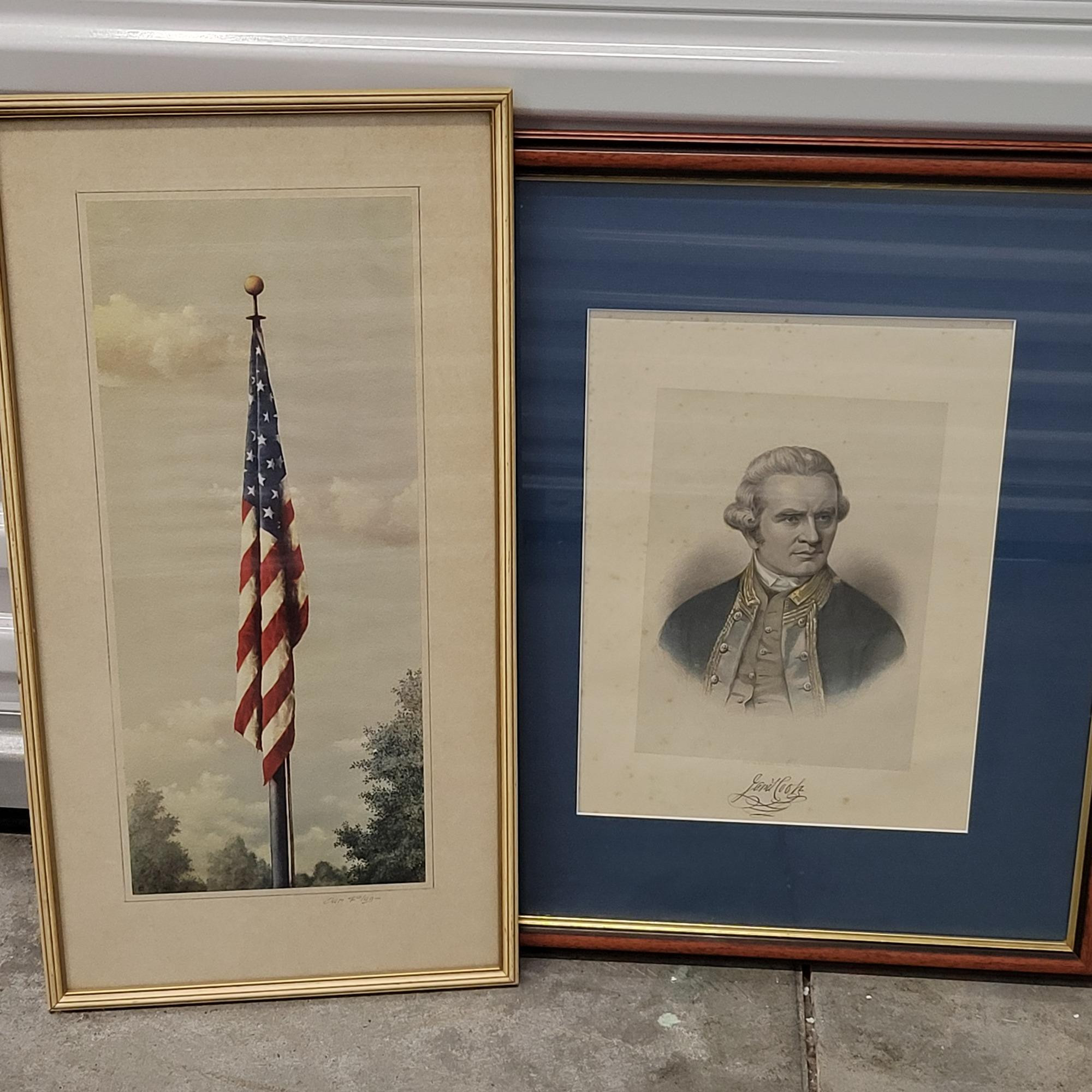 Lot # 62 - James Cook Engraving & Fred Tripp American Flag Picture