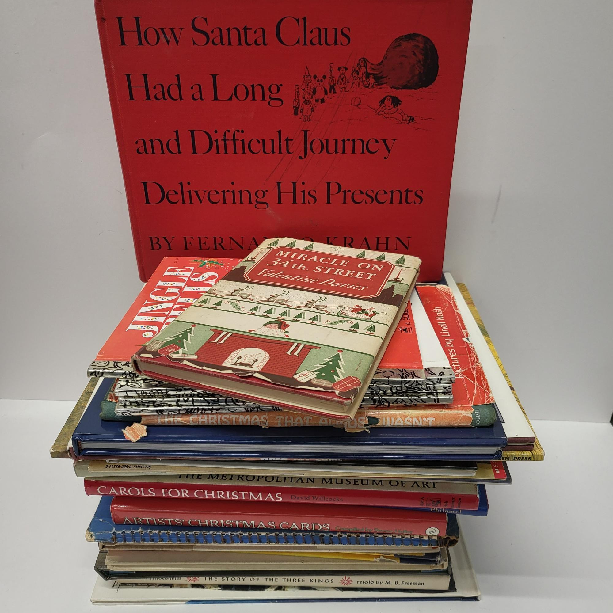 All books relaing to Christmas. Many are vintage. Miracle on 34th Street, The Little Drummer Boy, Santas Little Helpers, Little Golden Books and more.