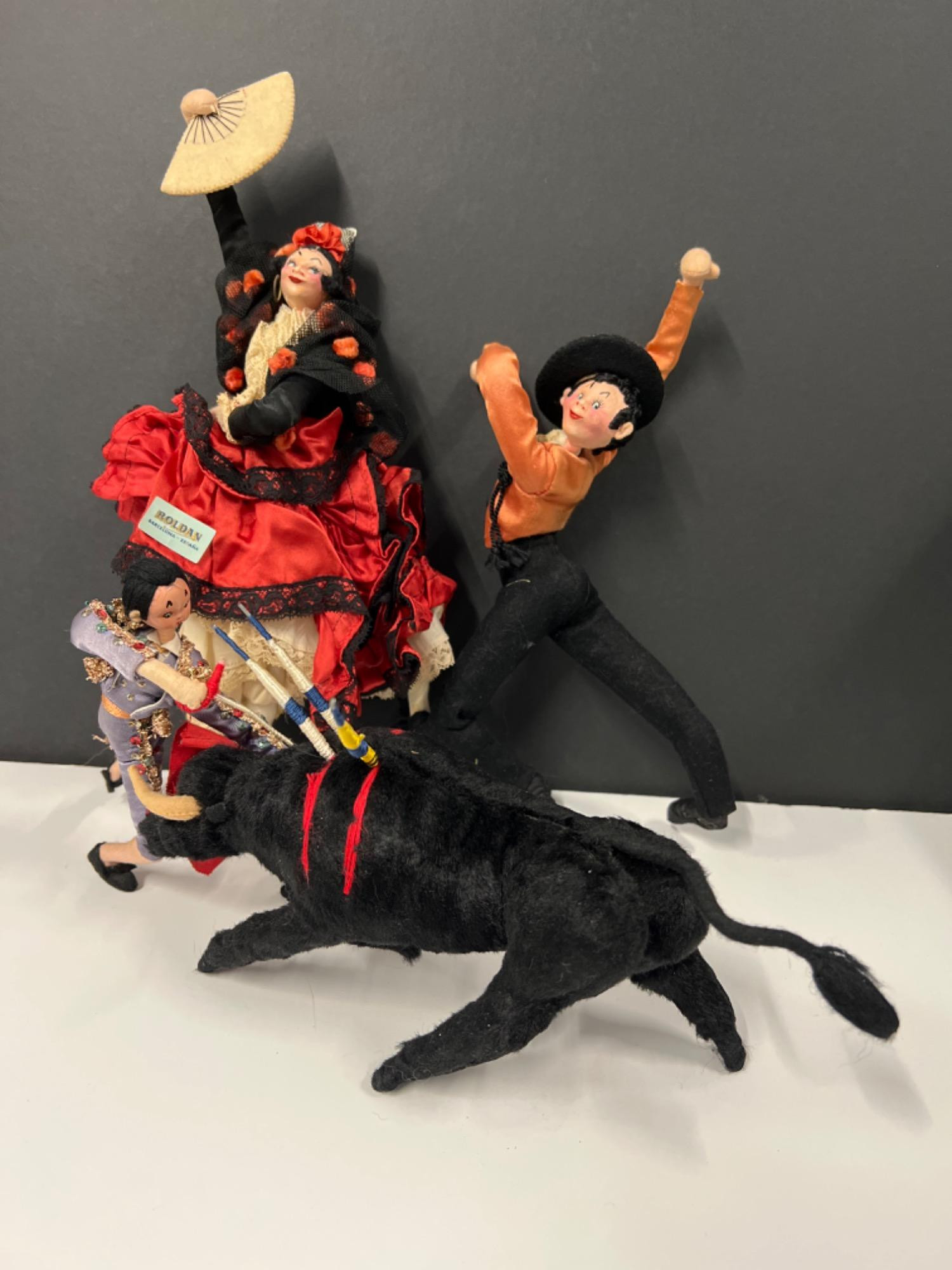 Flamenco woman 13” tall Flamenco Man 11” tall Bullfighter - 13” long and 6” tall