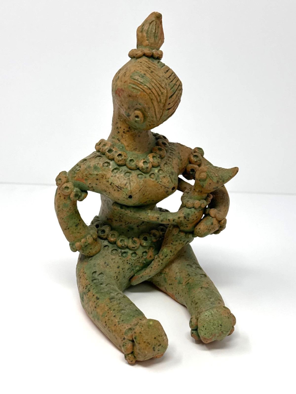 Glazed Terracotta Mother & Child Sculpture 7.5” H x 4.5” W x 5” D
