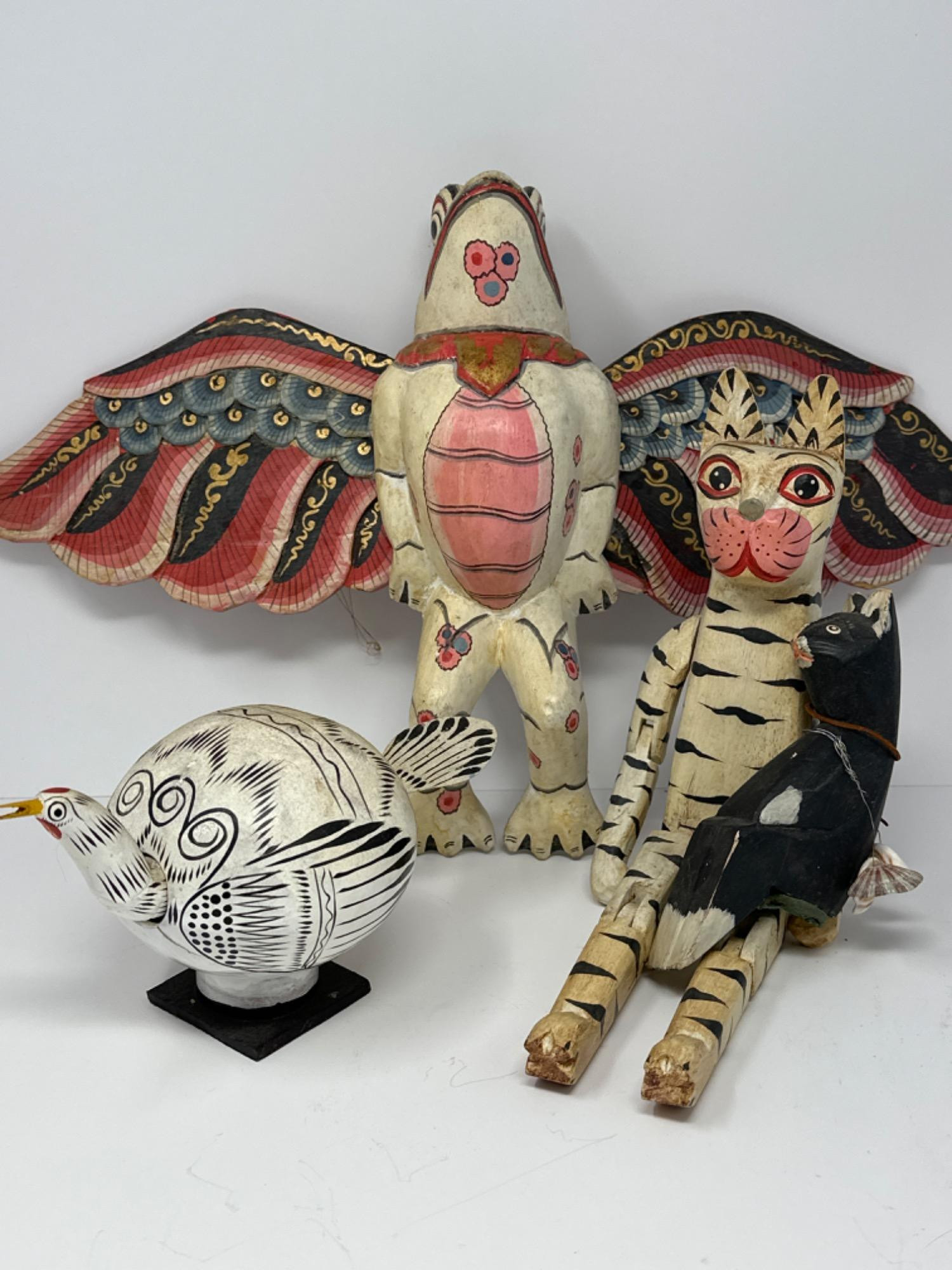Lot # 41 - Vintage Carved & Painted Folk Art Animals- Flying Frog Mobile