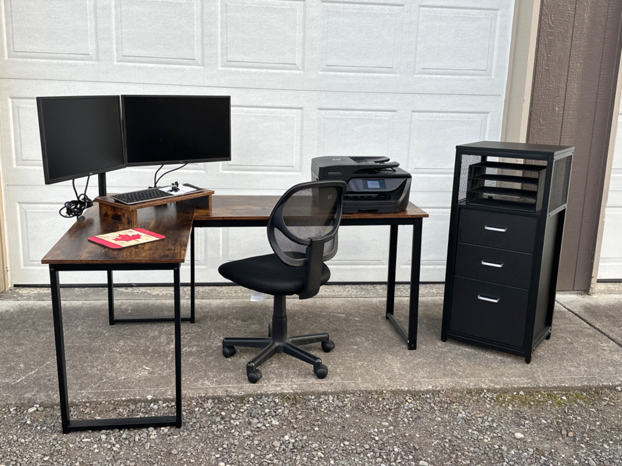Lot # 60 - Office 101- Desk, Monitors, Filing Cabinet, Chair, Printer & more