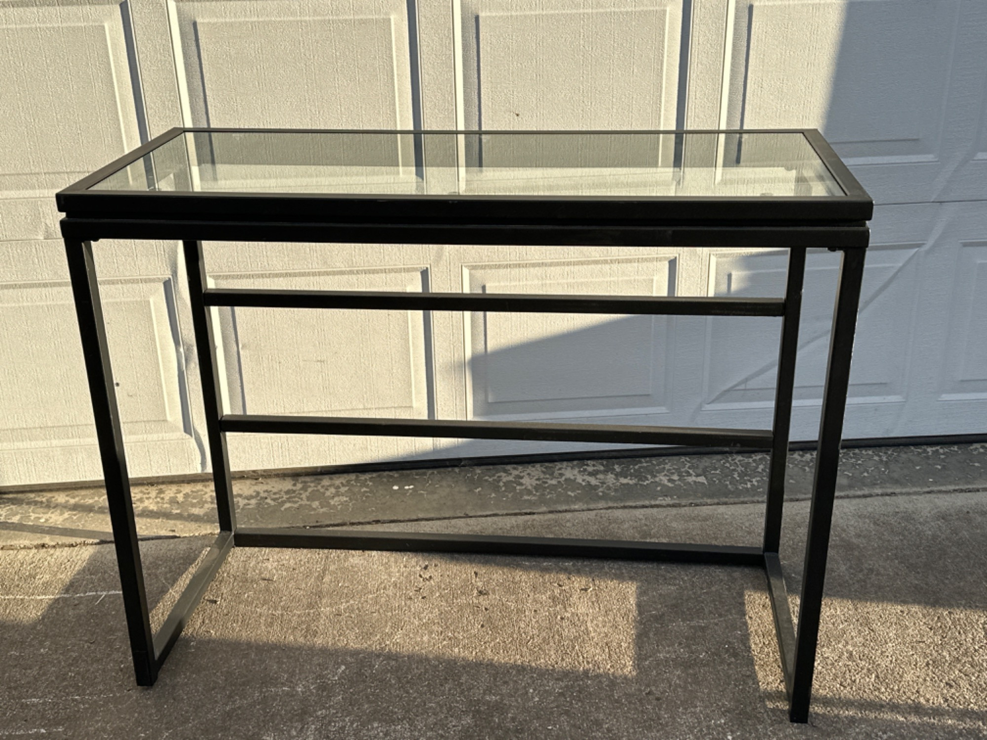 Lot # 84 - Glass Top Heavy Metal Frame Entry Table #3