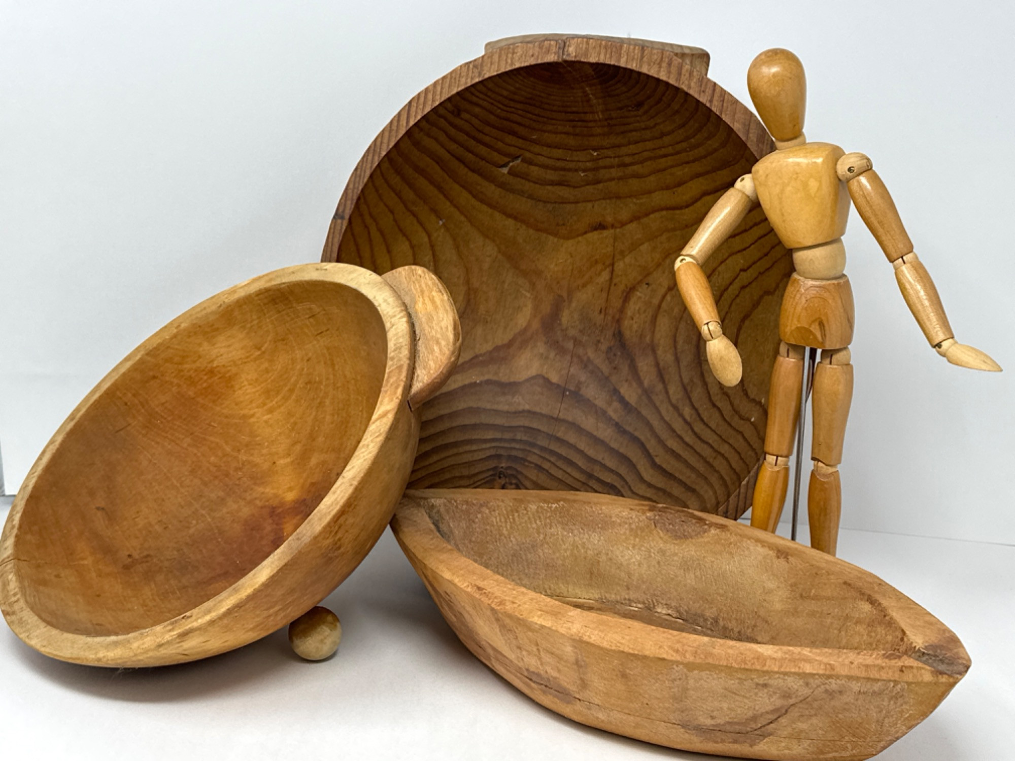 Lot # 116 - Vintage Carved Wooden Bowl & Figural Lot