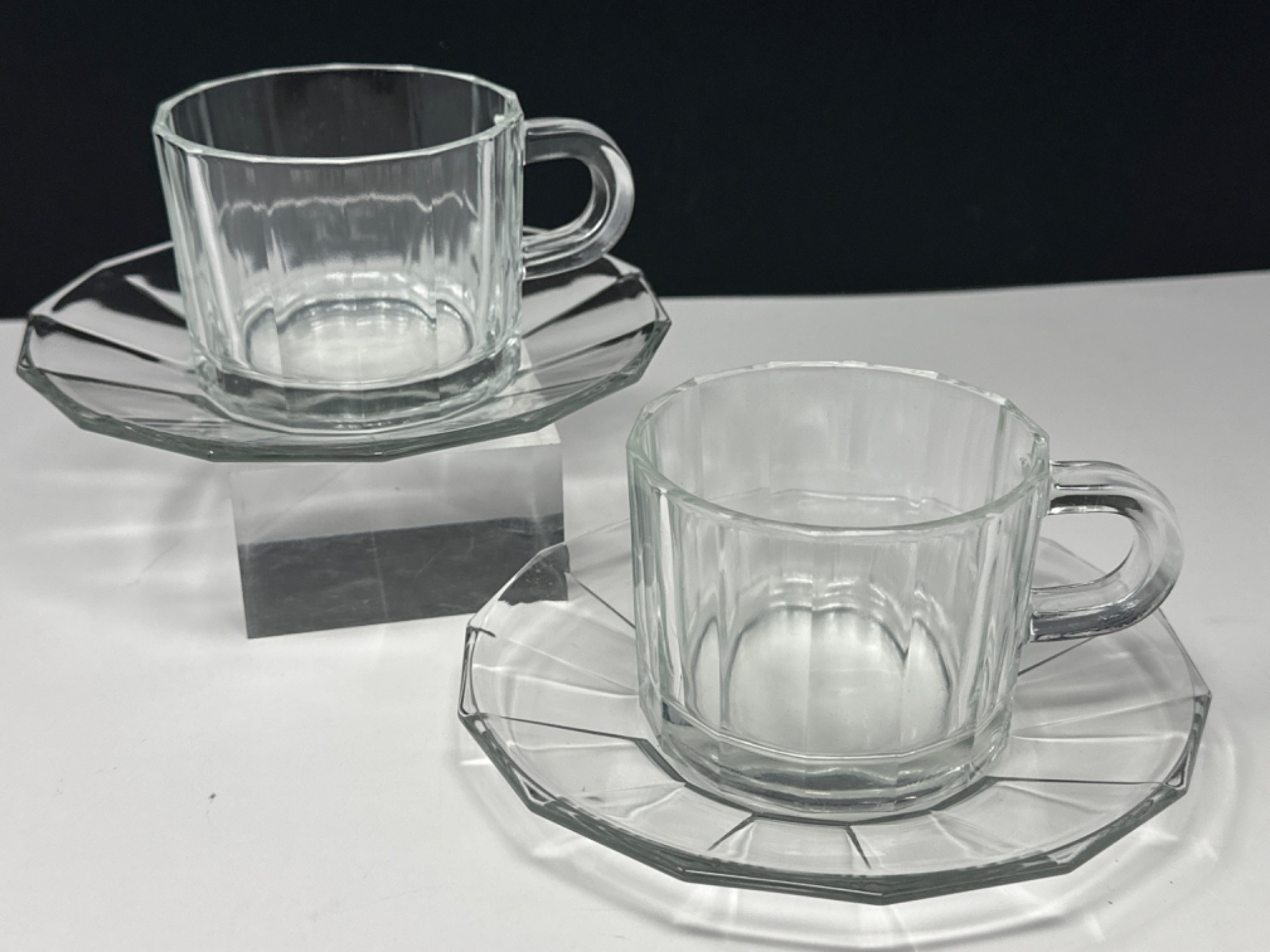 Lot # 150 - Bormioli Rocco Italy Clear Cup & Saucer 4pc