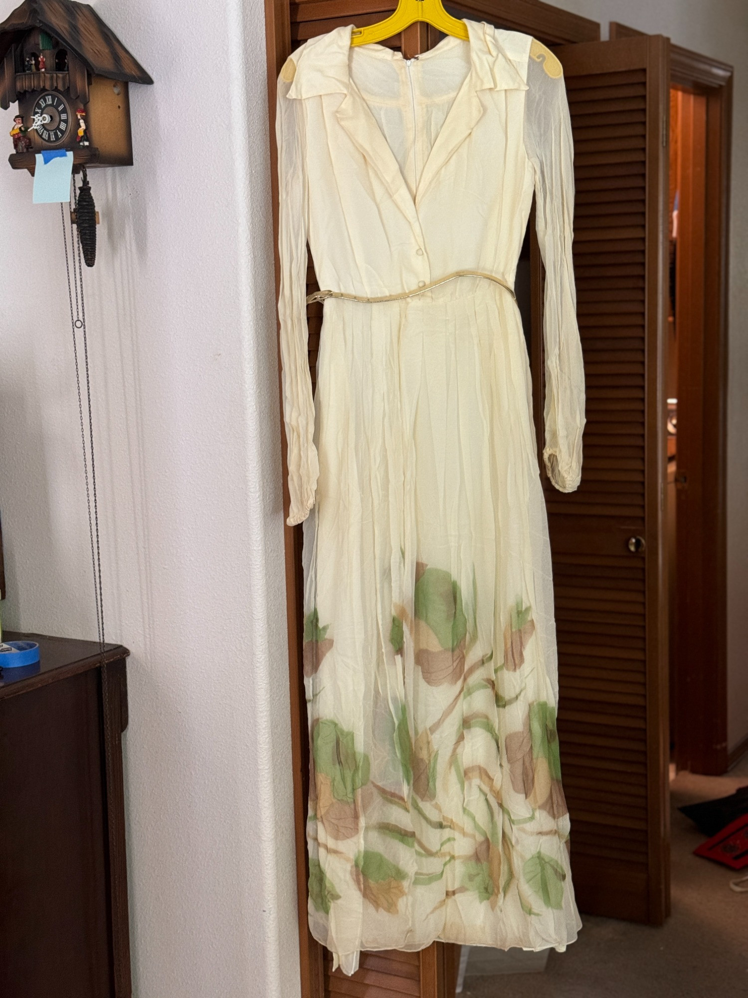 Lot # 66 - 1970s Delicate Cream & Watercolor Floral Lee Jordan New York Dress