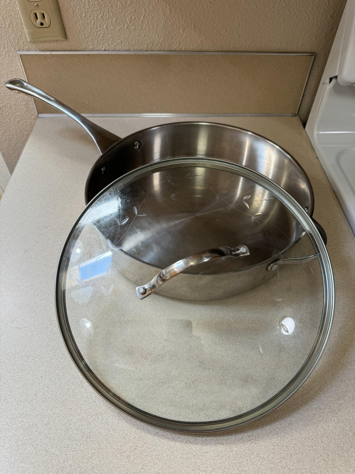 Princess House 18/10 Stainless Steel 5 Qt Round Pan w/ Etched Glass Lid Excellent condition