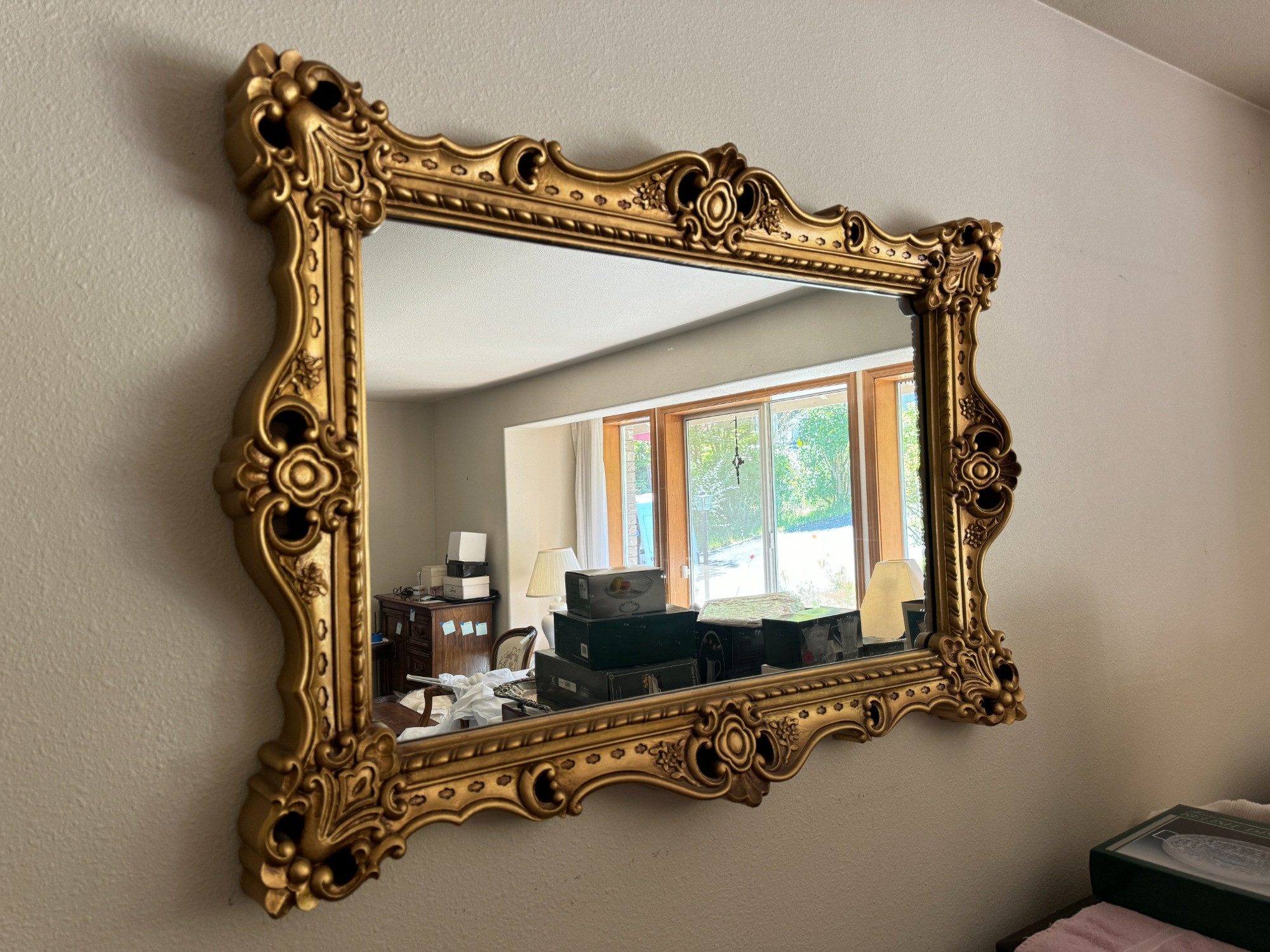 Lot # 60 - Hollywood Regency Glam Gold Composite Wall Mirror - 39.5"W