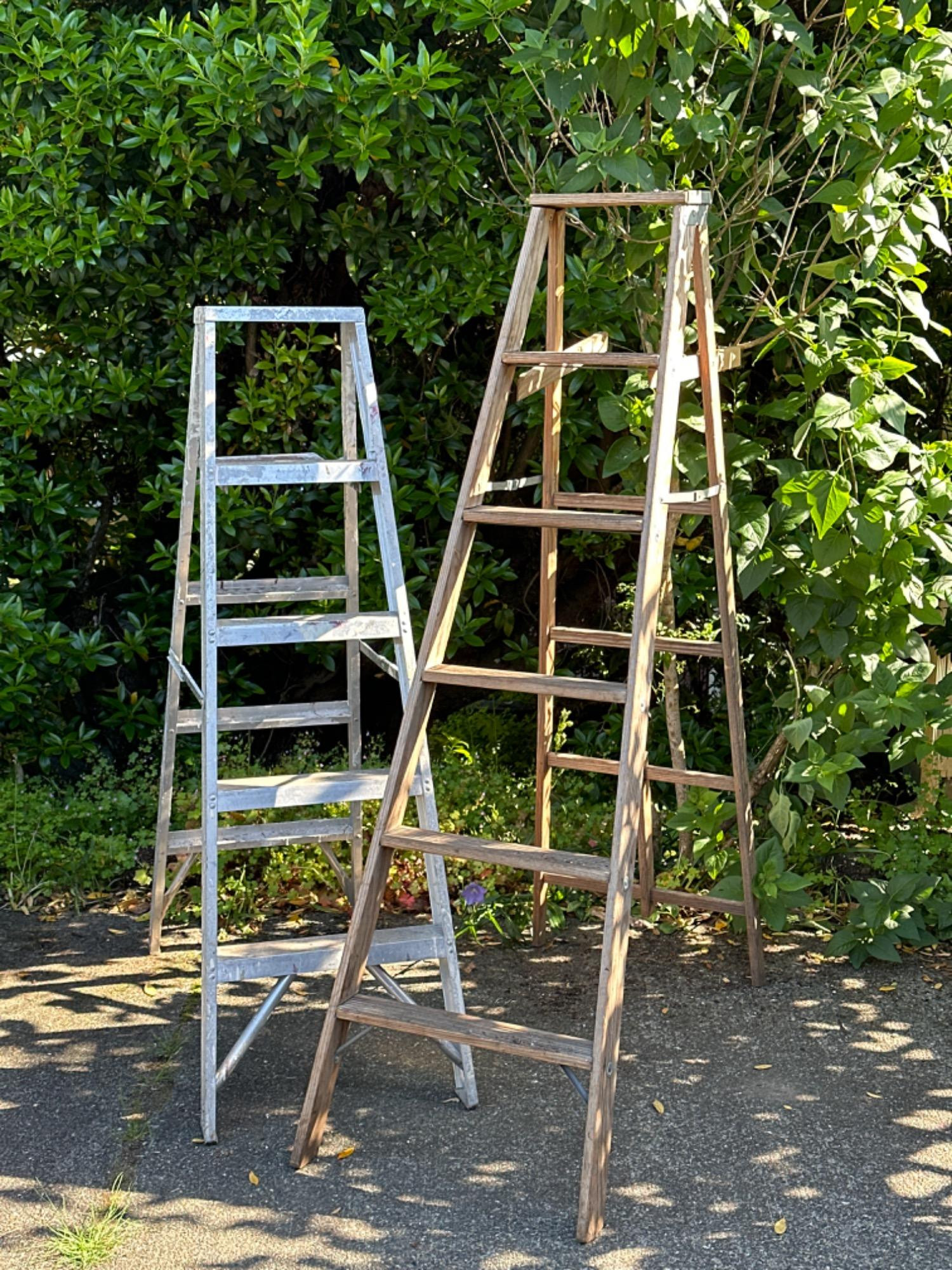 Lot # 173 - Vintage Aluminum Keller Aluminum Ladder + Wood Ladder