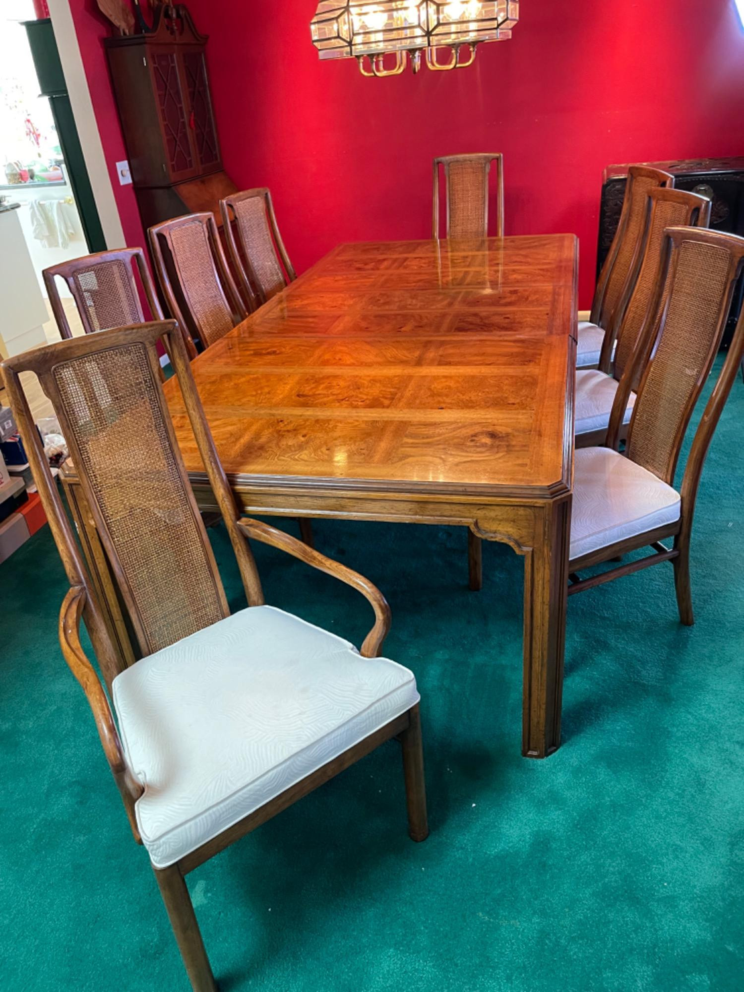 Lot # 10 - Mid Century Drexel Heritage Oriental Table + 3 Leaves & 8 Chairs!