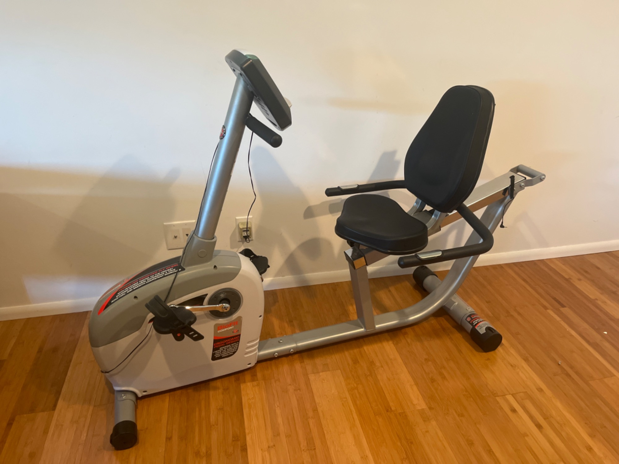 Measurements (approximate): 66 inches L x 25 inches W x 42.5 inches H Bike plugs in and turns on. Bike pedals and seat are in good condition. Pedals turn just fine, doesn’t appear to be any issues with performance.