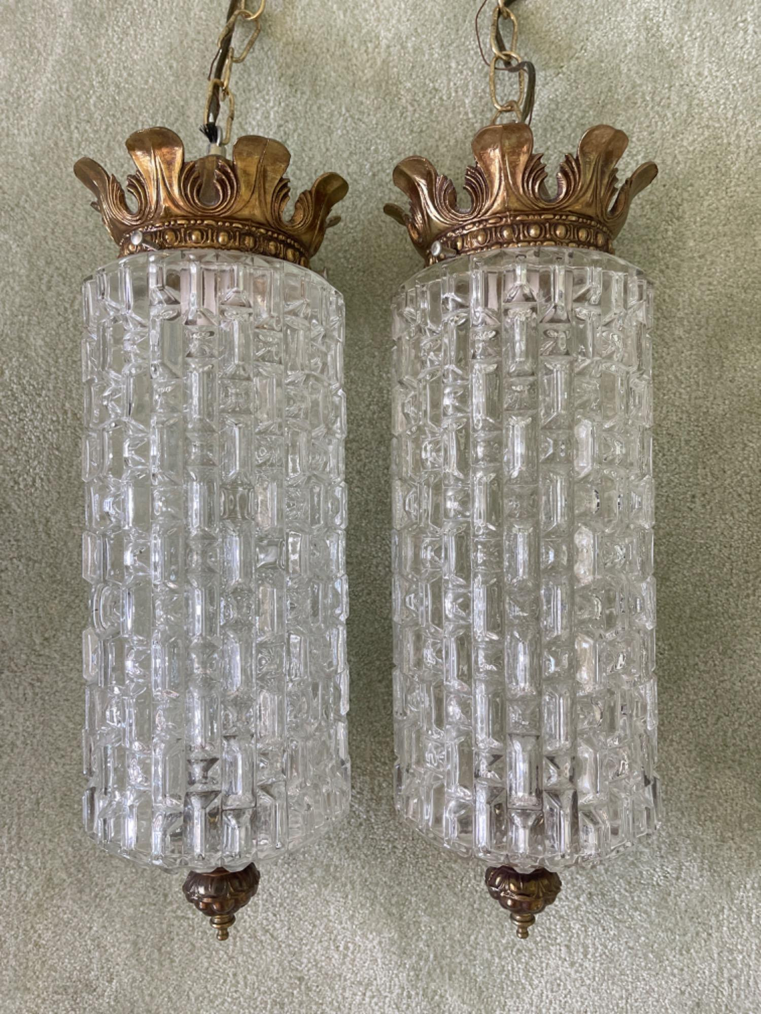 Lot # 32 - Vintage Hollywood Regency Style Pendant Lamps With Glass Shade