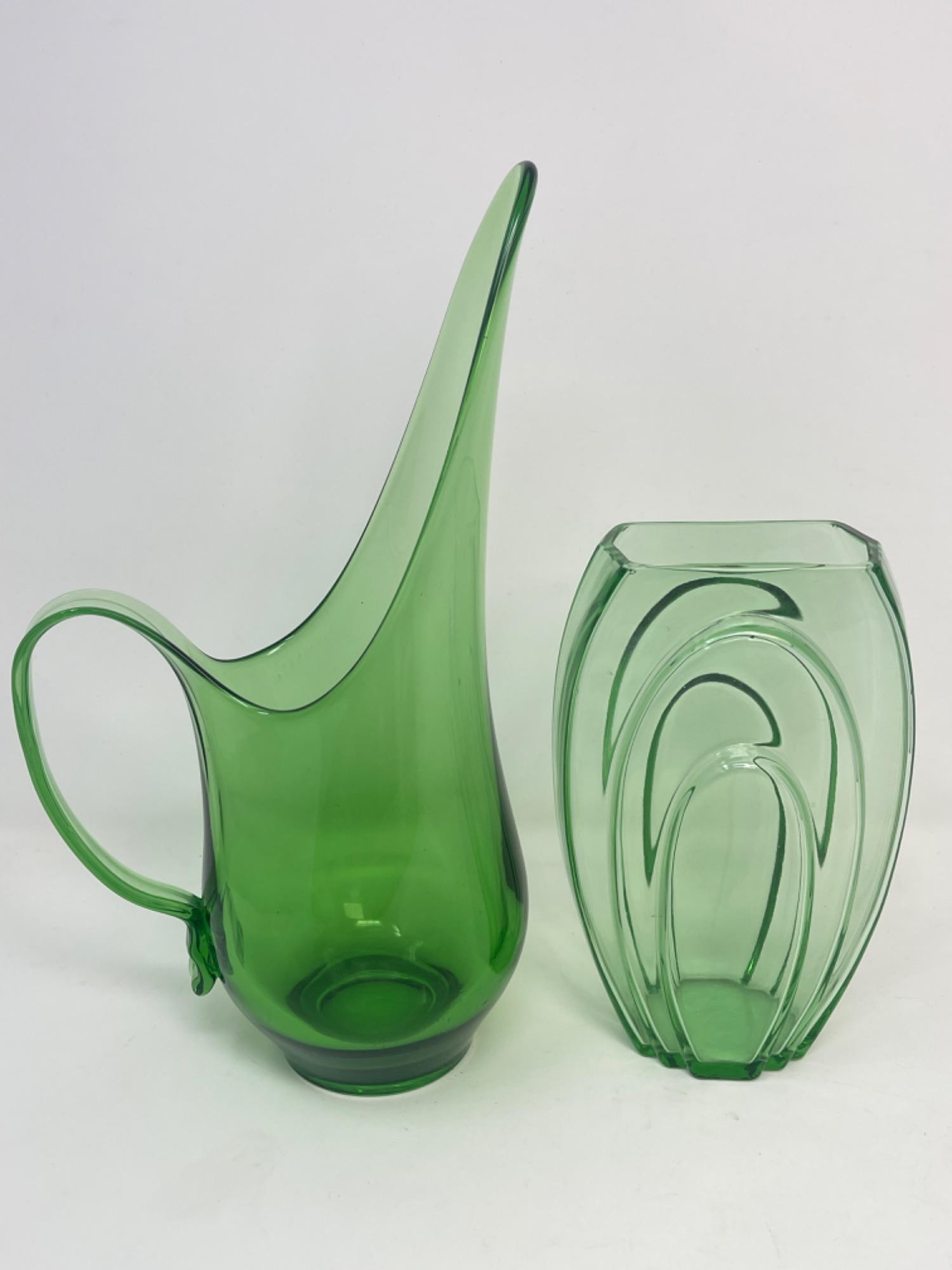 Lot # 38 - Vintage Green Glass Pitcher And Vase