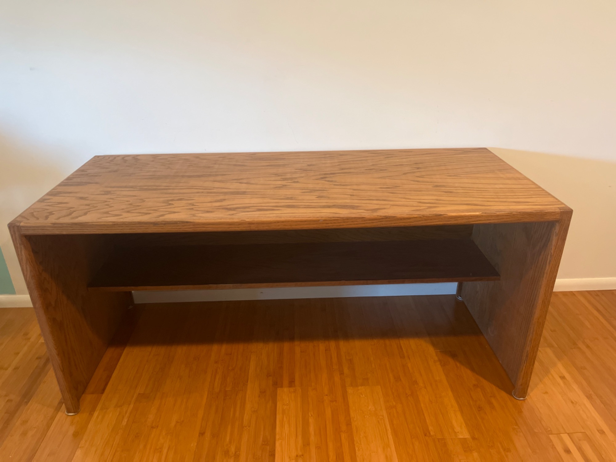 Measurements: 60 inches L x 25 inches W x 27.25 inches H Dusty, some scratches on surface. One small gouge missing from the right side.