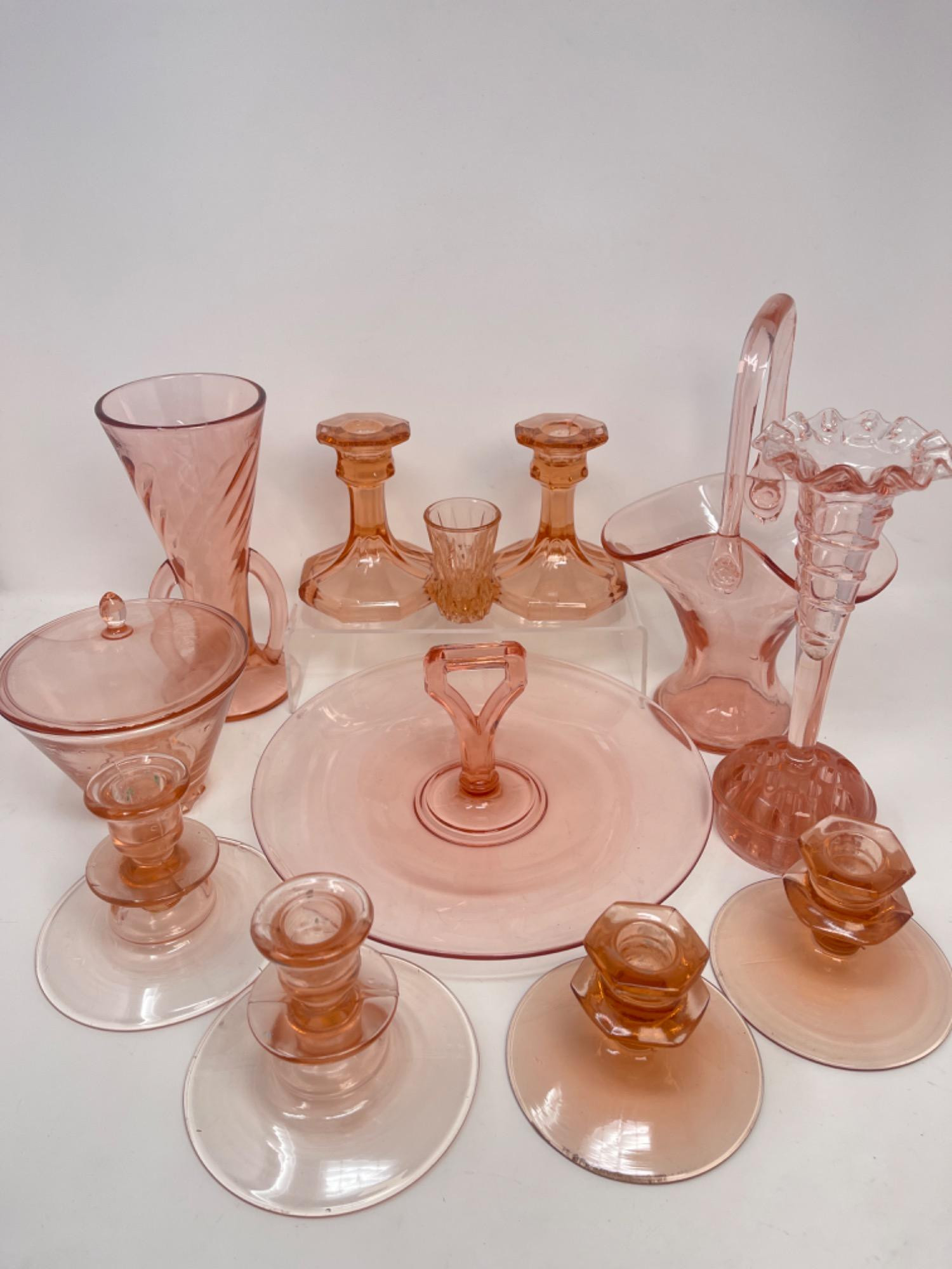 Lot # 68 - Pink Depression Glass Assortment - Candlesticks, Vases +