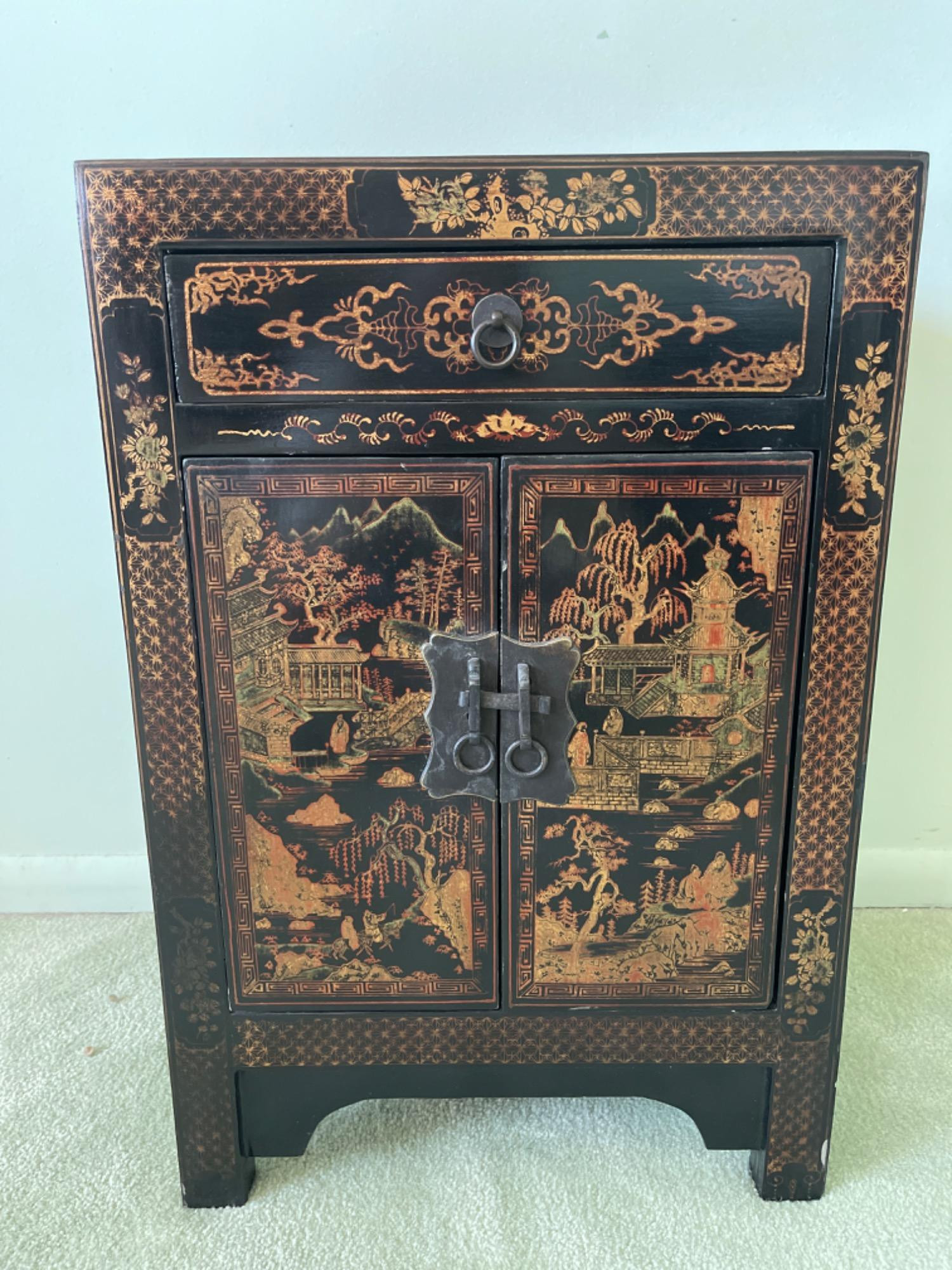 Lot # 80 - Antique Chinese Hand Painted Black Lacquer Cabinet #1