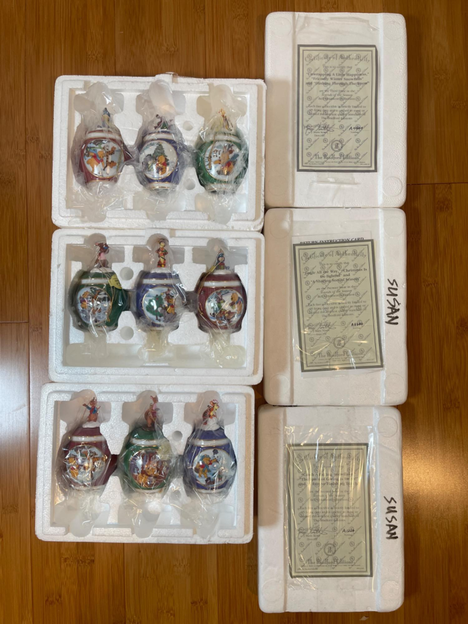 One ornament has one missing piece broken off, but the piece is with it. COA's included.