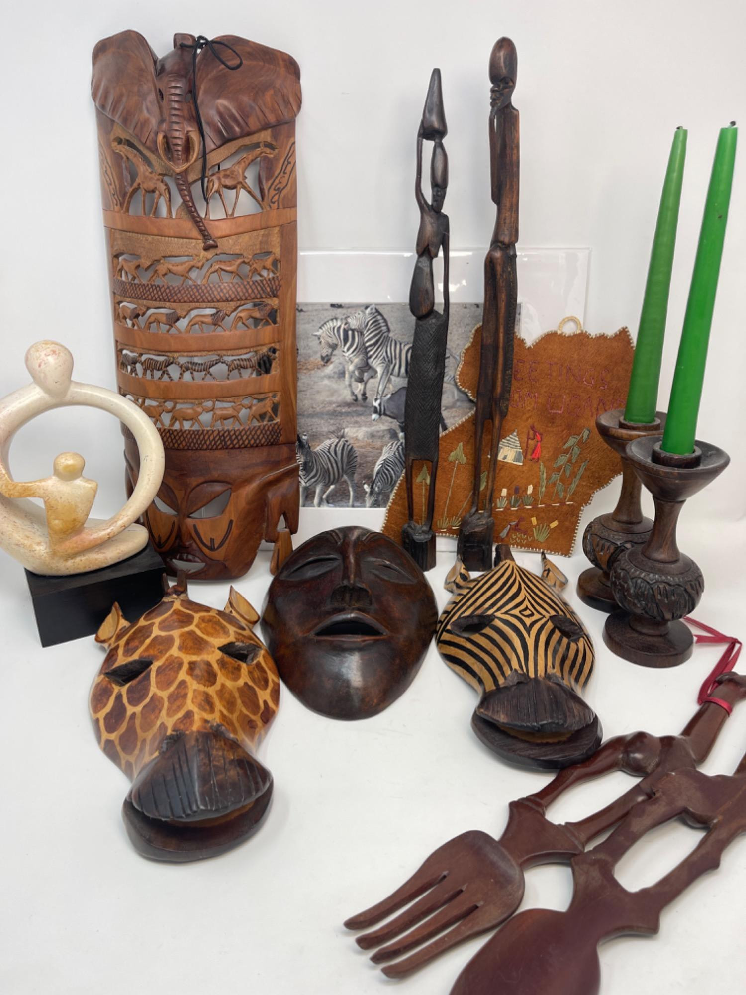 Lot # 108 - Assortment of African Decor! Carved Wood Figurines, Candlesticks +