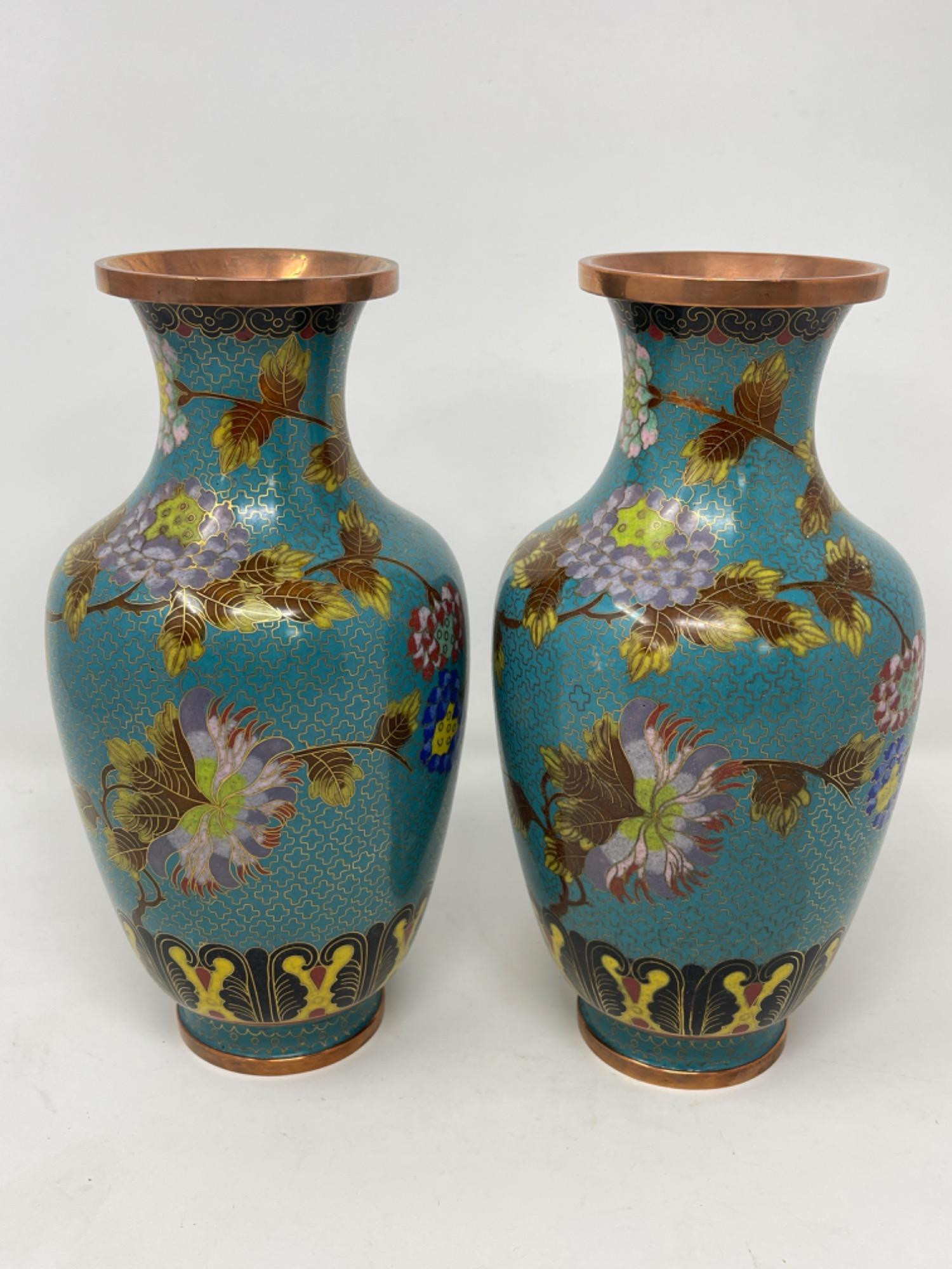 Lot # 113 - (2) Vintage Floral Chinese Cloisonné Vases
