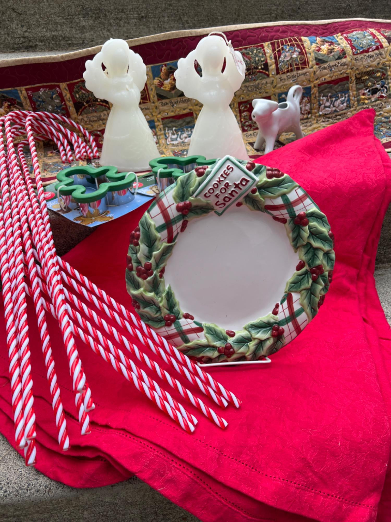 Lot # 237 - More Vintage Christmas-Round Tablecloth, Super Candy Canes, Fitz/Floyd