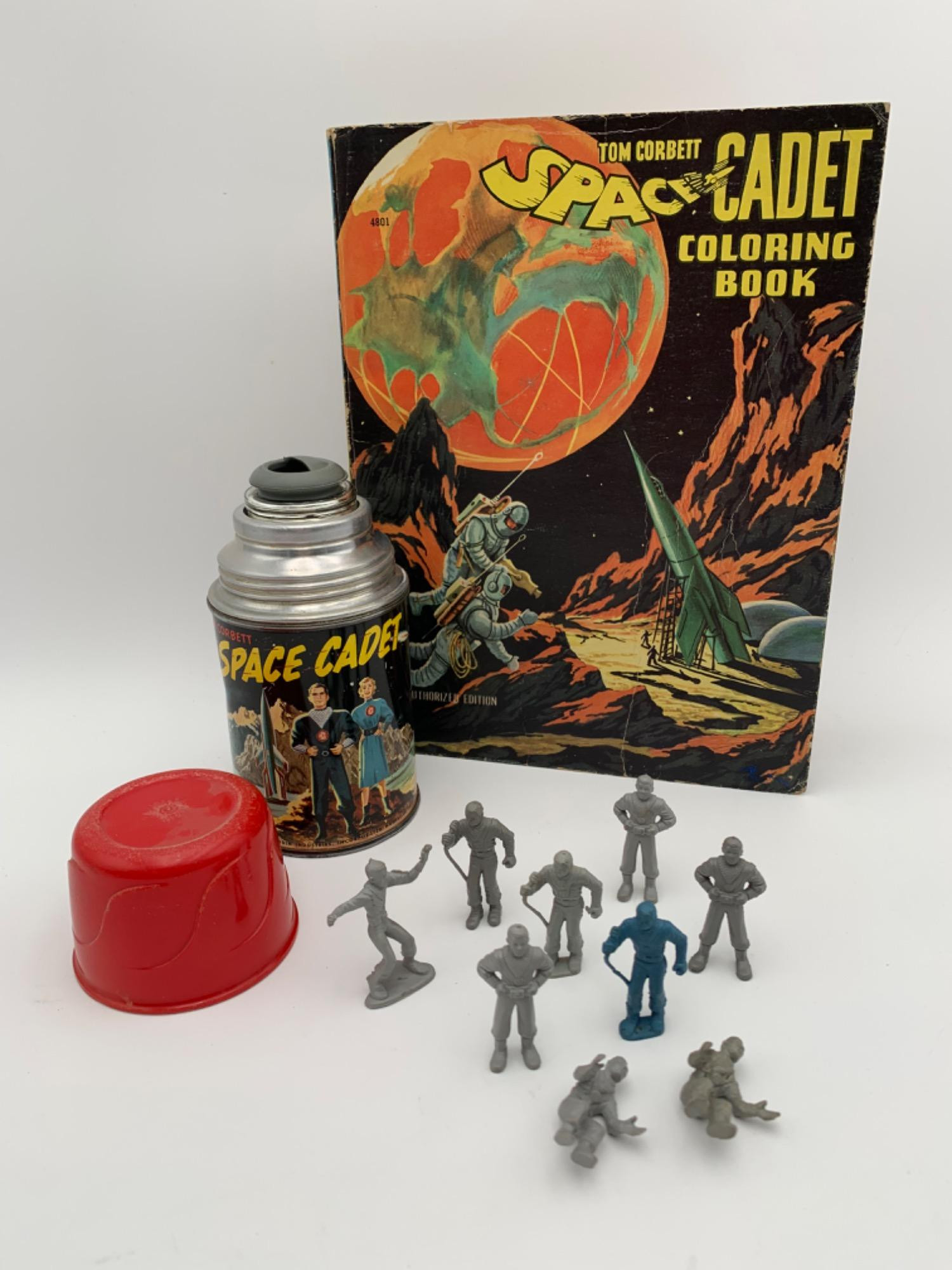 Lot # 17 - Tom Corbett - Space Cadet Bundle - Thermos, Spacemen, Coloring Book
