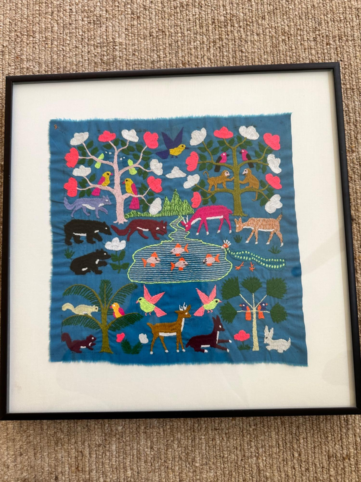 Vintage Hmong Story Cloth Hand Embroidered Animal Scene. Measures- 15 x 15