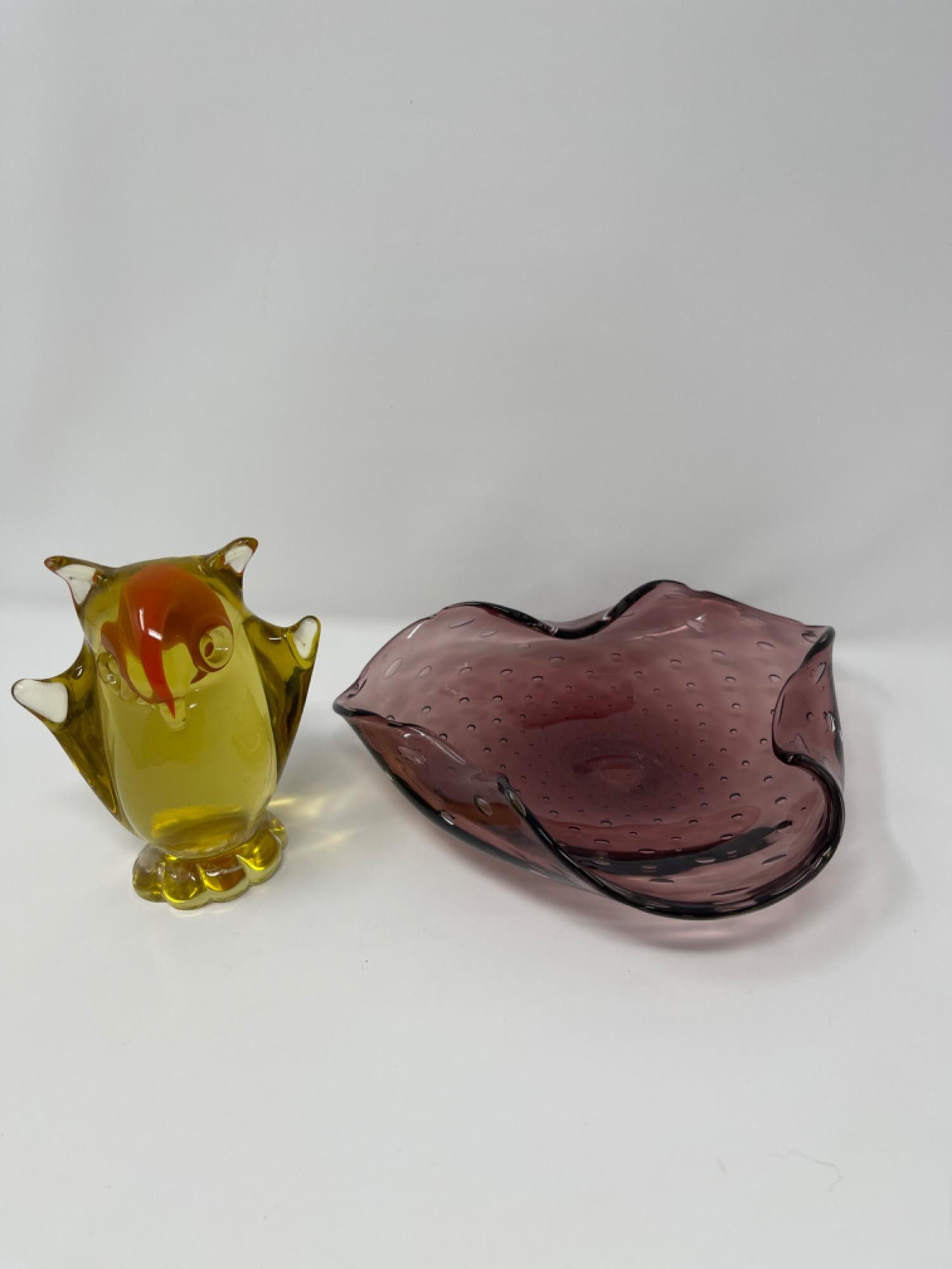 Lot # 99 - Murano Glass Bowl and Glass Owl