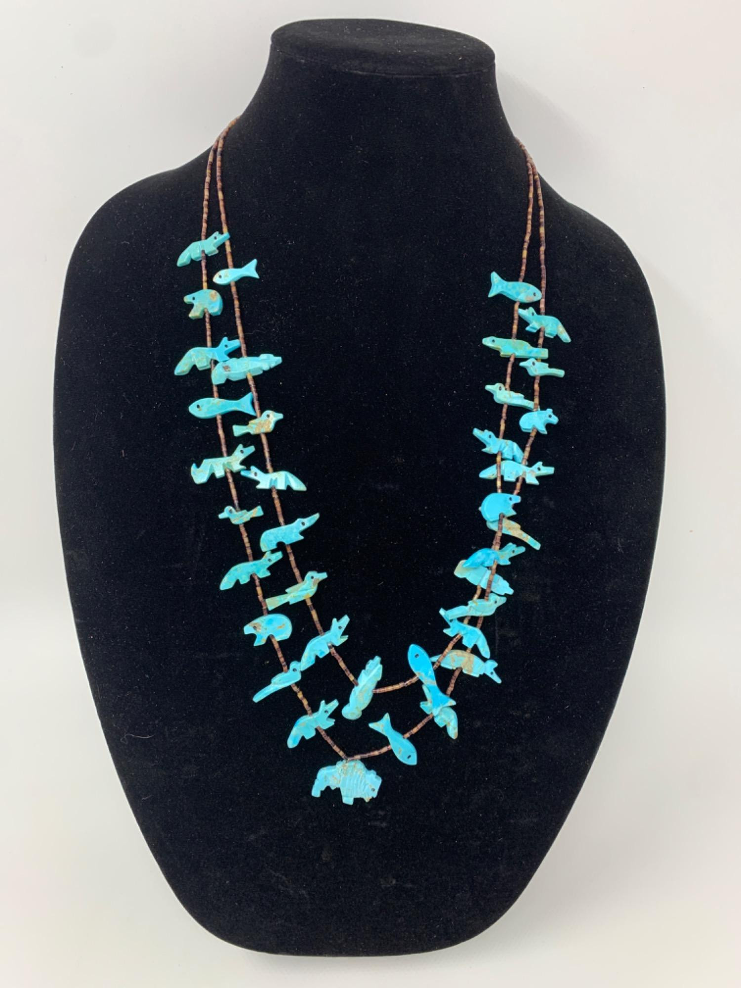Lot # 23 - Two Strand Turquoise and Beaded Fetish Necklace