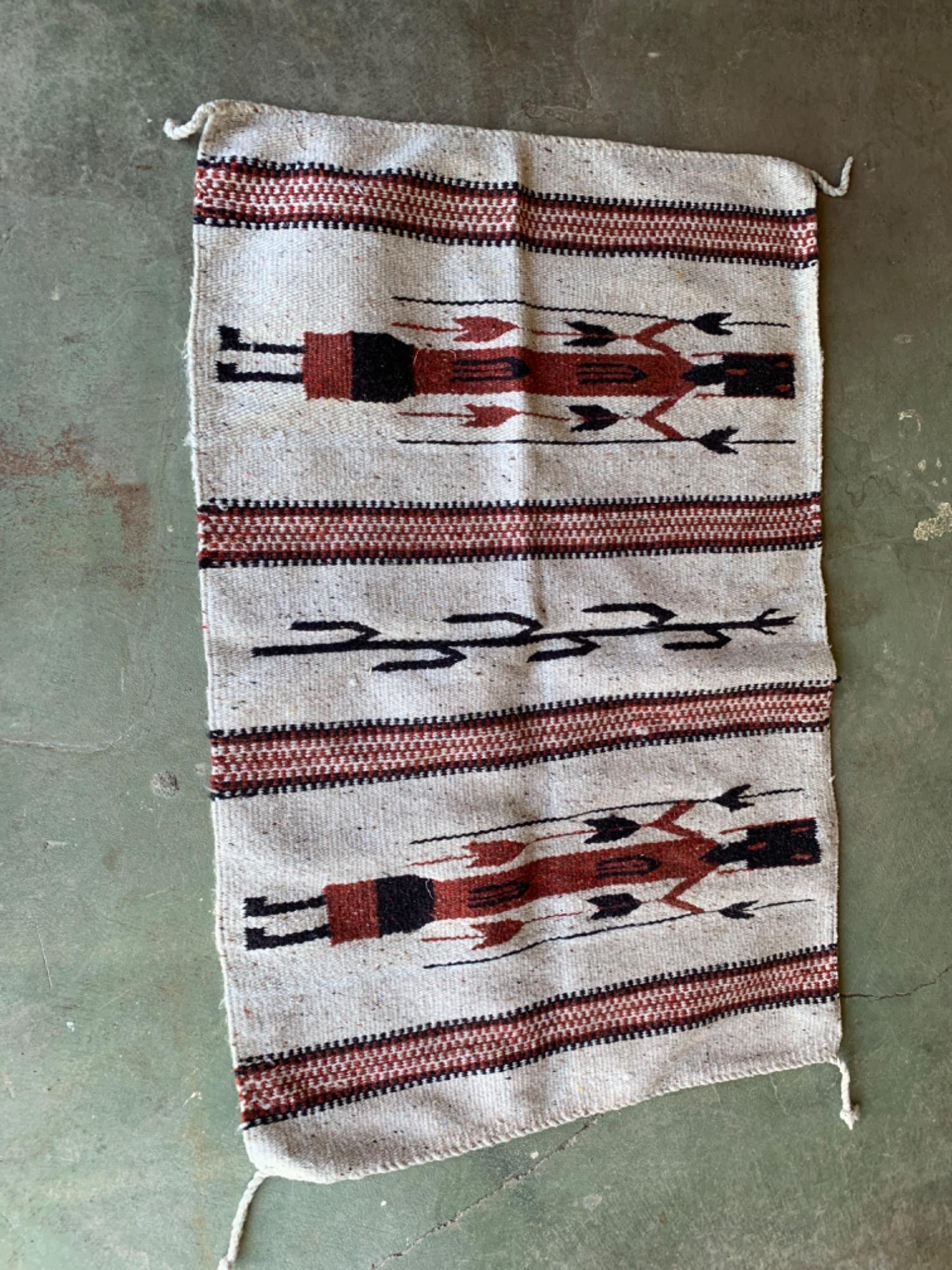 Handmade woven wool rug. Navajo design. No flaws detected and appeared unused.
