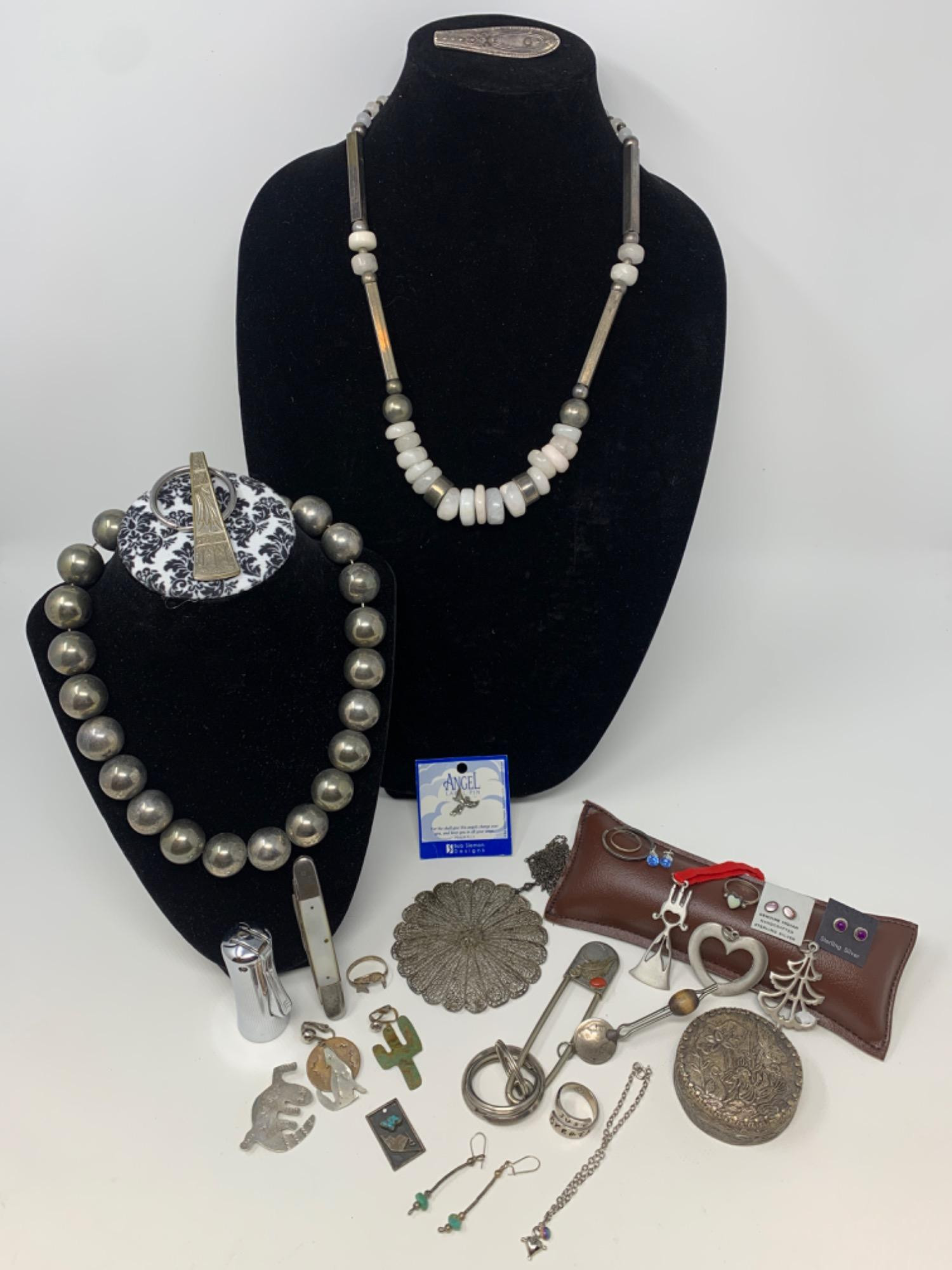 Lot # 97 - Assorted Large Silver Jewelry and Collectibles