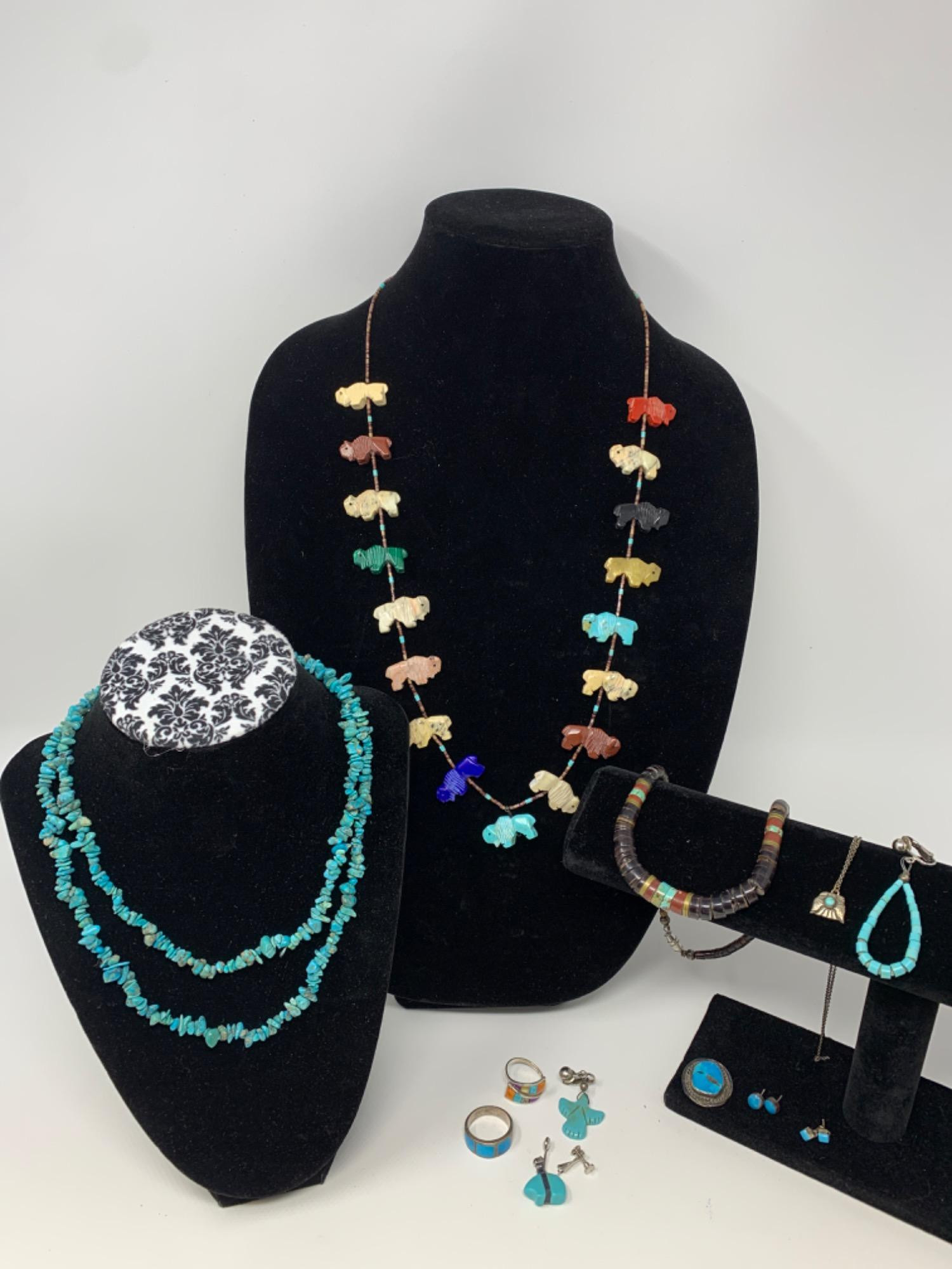 Lot # 117 - Assorted Turquoise Jewelry with Bison Fetish Necklace