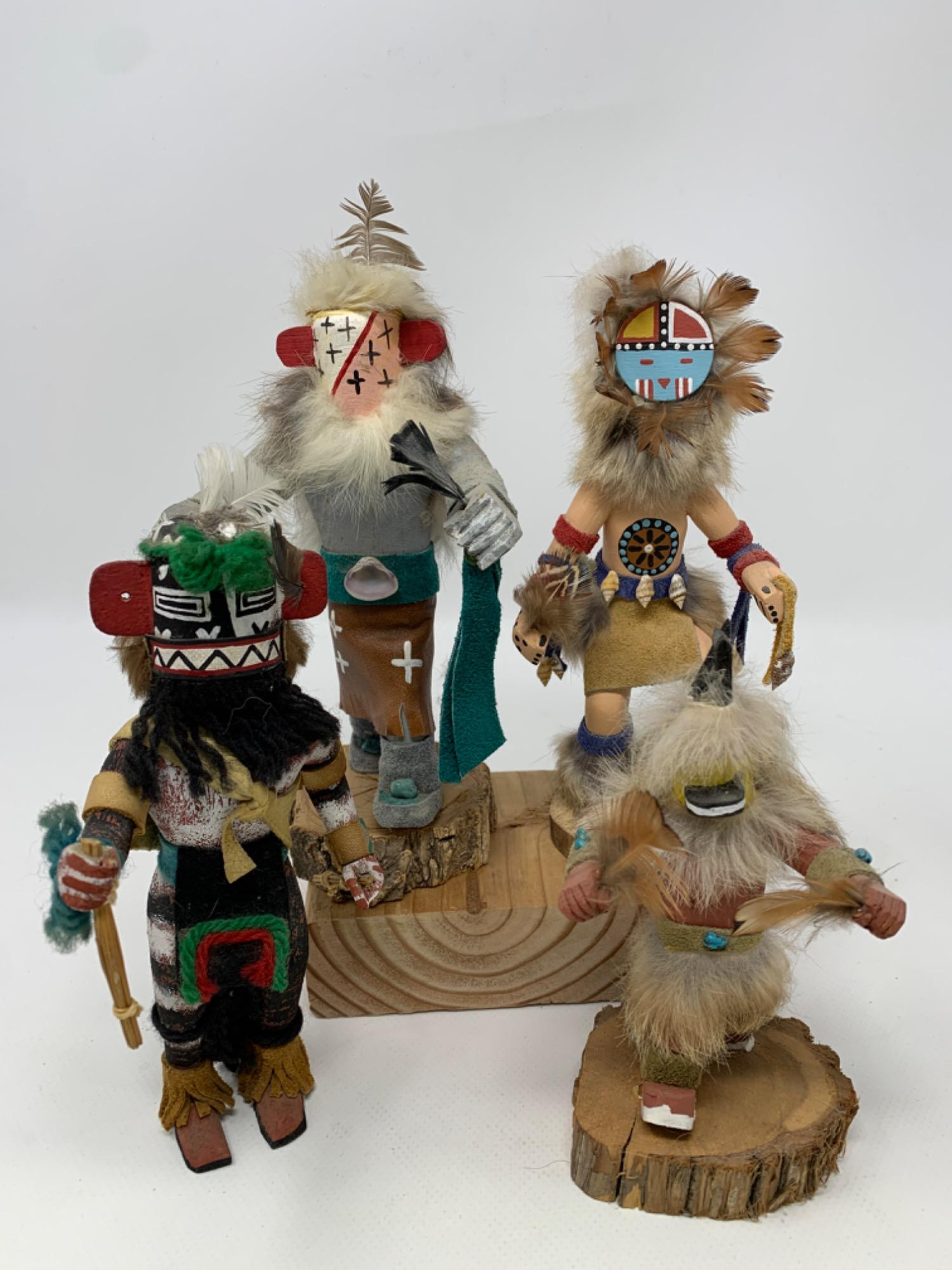 Four vintage Katsina statues. Variety of materials, sizes and styles. Signed by the artist.