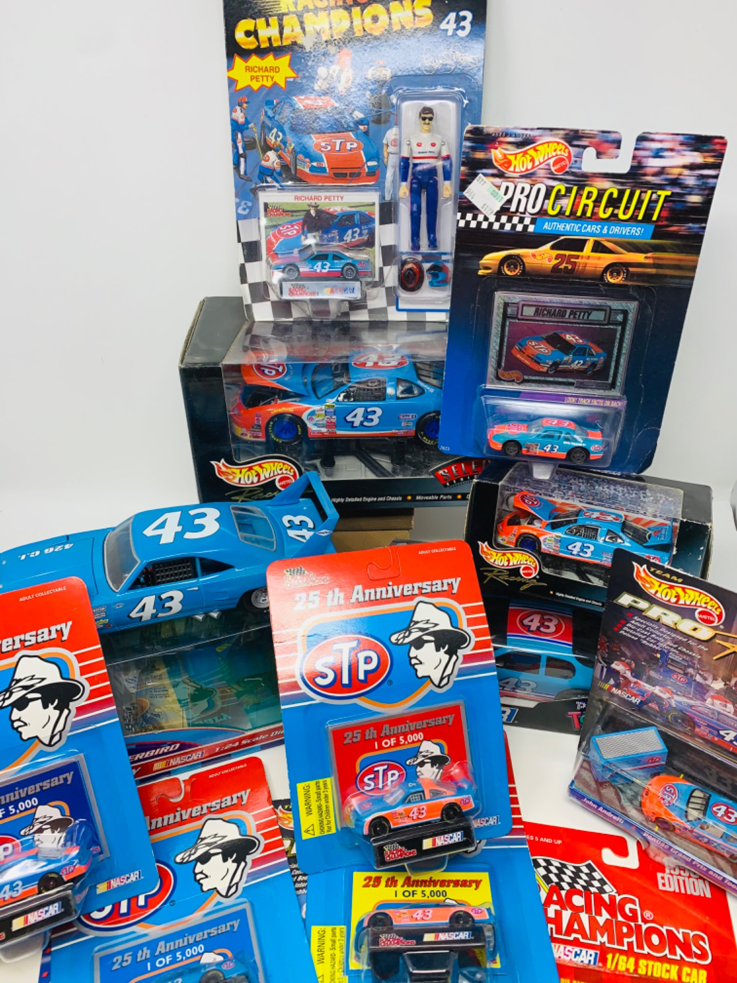 STP/Richard Petty NASCAR set. Die cast cars, trading cards, Ornament, Trivia game and more. Original boxes for most cars. Extra pieces found and added.
