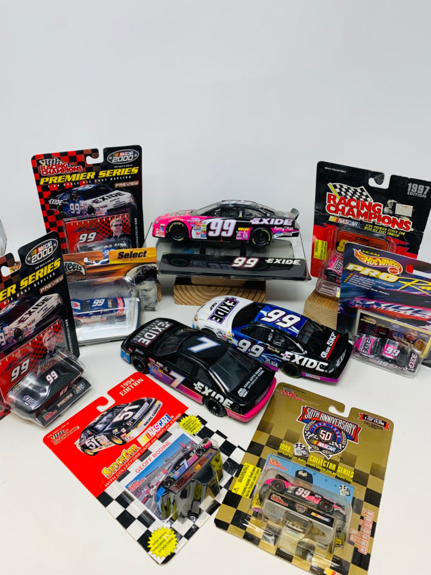 Exide racing fan gear. Die cast cars, trading cars. NIB items. Most items have original boxes and more was /May be added. Redline car included.