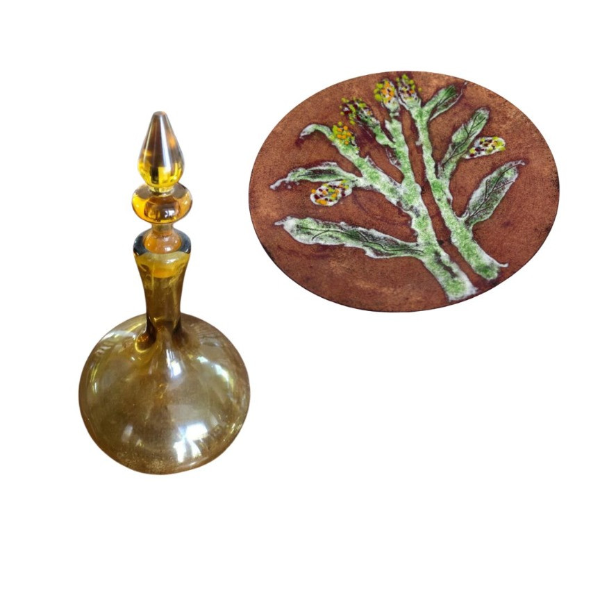 Signed Metal Copper Toned Plate and Blenko? No marking, Decanter Plate- 7.5 x 1 vase- 8.5 x 7