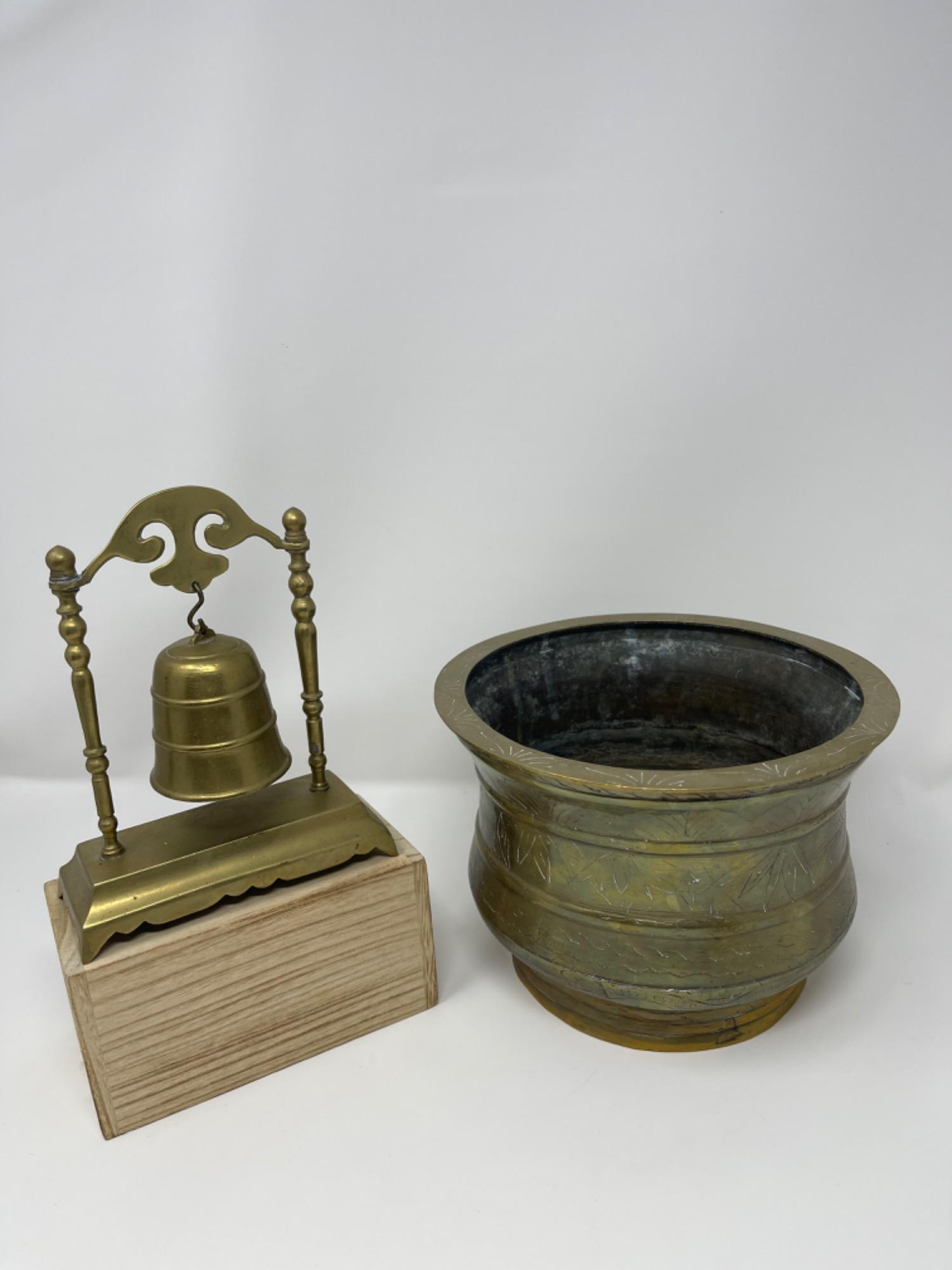 Lot # 18 - Etched Brass Planter and Vintage Chinese Brass Bell