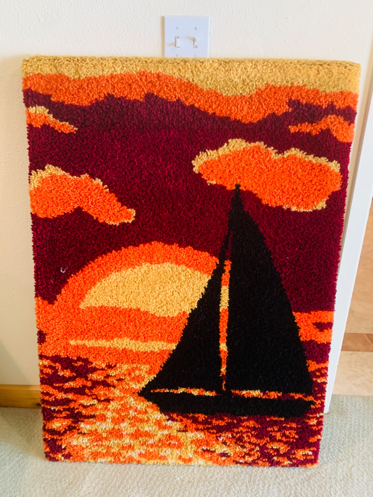 Vintage latch hook wall art. In great condition. Vibrant color and detail. Located at Tacoma Narrows auction site.