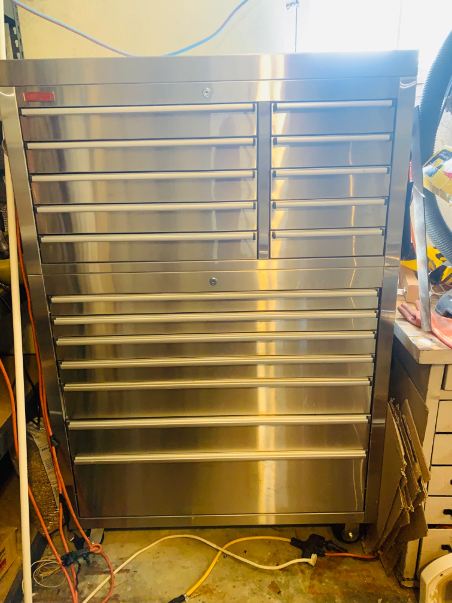 Large Rolling Tool Chest by CSPS. Tons of storage and items. See pics for details. In the garage, easy roll to truck.