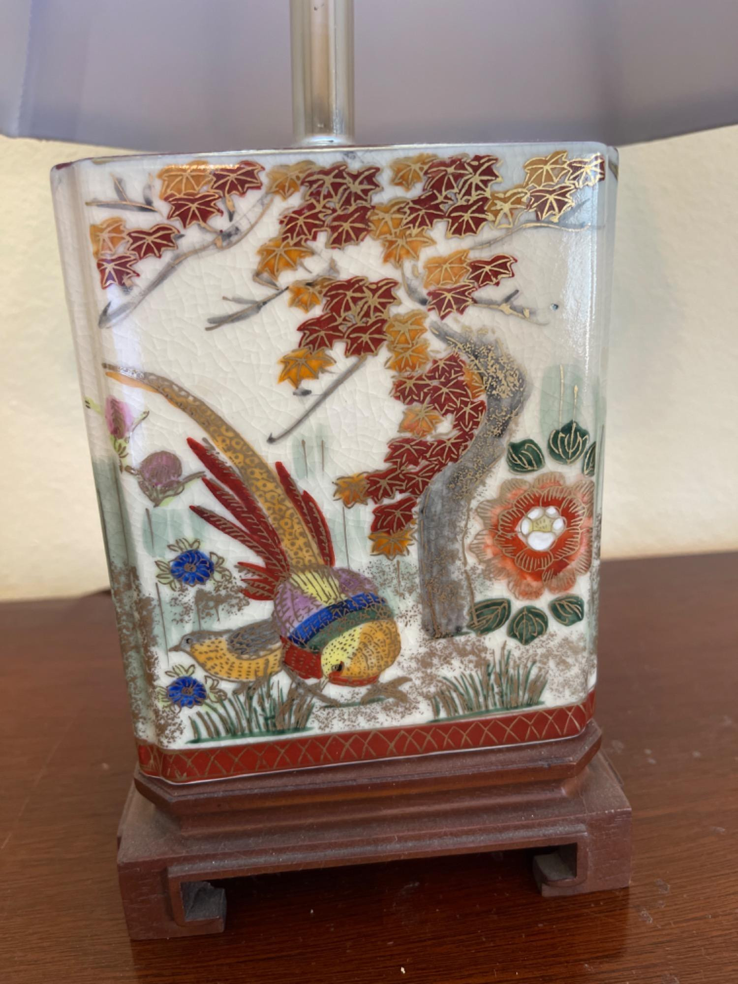 Lot # 81 - Vintage Japanese Bird Scene Lamp With Shade
